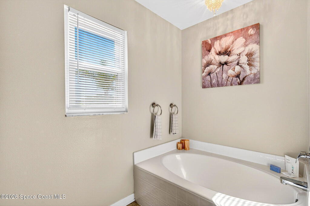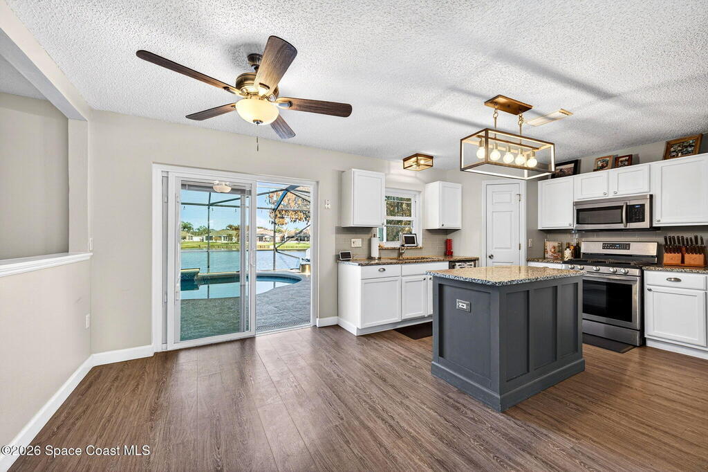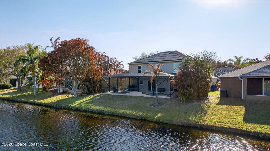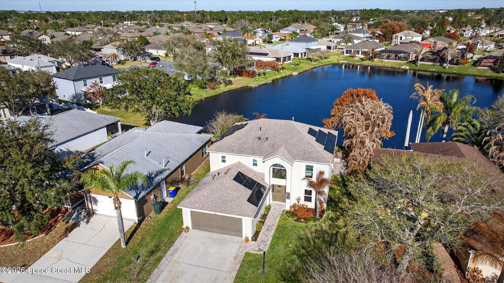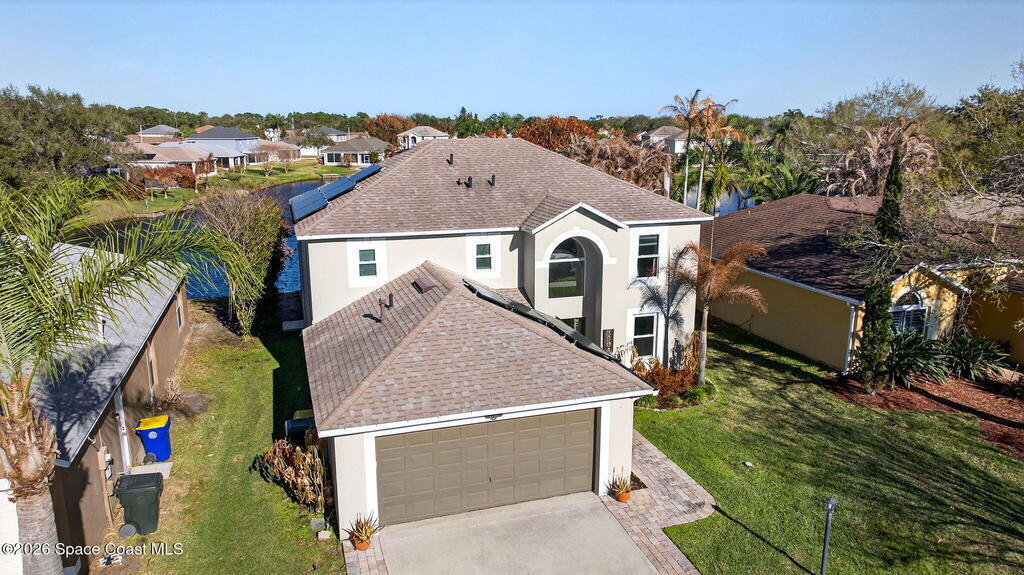 Lakefront Paradise with Pool in Ashwood Lake Community ! This impressive 4-bedroom, with a bonus room & 3-bathroom home features over 2250 square feet of living space in the Viera/Rockledge area, complete with a 2-car garage and screened patio, totaling over 2700 square feet. The entrance foyer boasts high ceilings, leading to spacious separate living and family rooms. The island kitchen seamlessly connects to the family room and screened back porch, overlooking the serene lake. Key features includes PAID SOLAR PANELS worth $47,000, ( IMPACT WINDOWS, a recently installed SALT WATER POOL at 2022 , 2019 ROOF, newer fresh exterior painting, 2021 WATER HEATER& TESLA charger in garage. The master suite offers a relaxing garden tub and separate shower. Ideally situated near beaches, Cape Canaveral, and Melbourne, within 5 minutes of The Avenues shopping, and under an hour from two international airports and Orlando attractions. This extraordinary property will sell quickly, don't miss out
