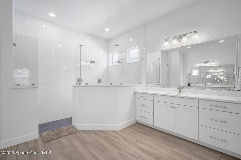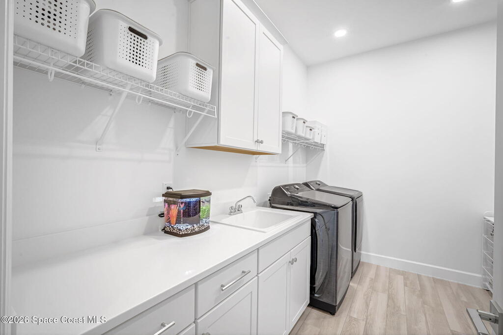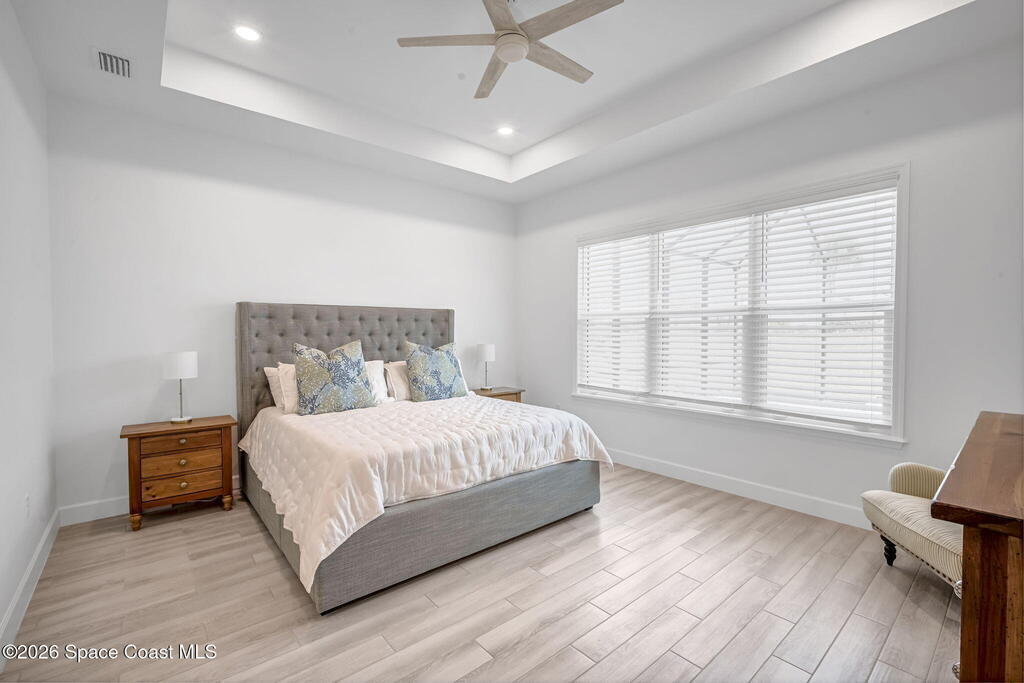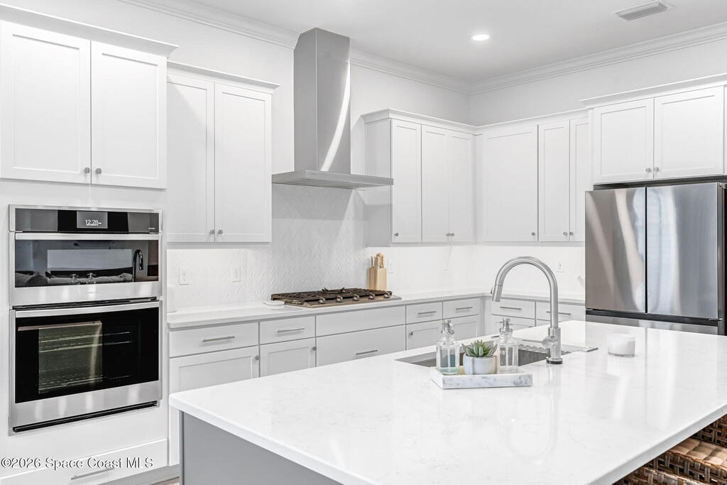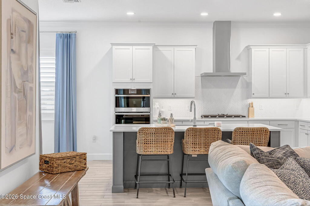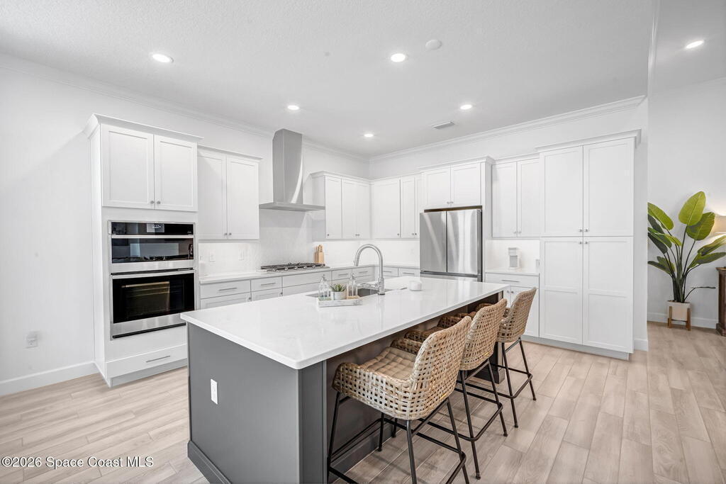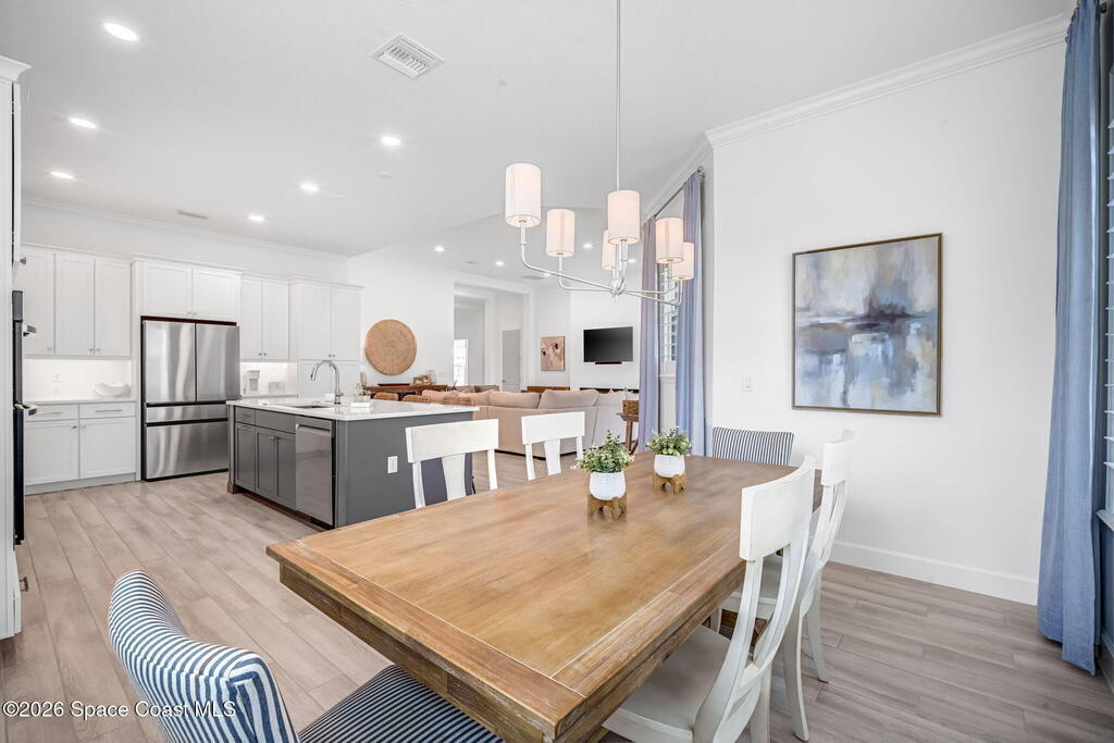 Skip the build time and step straight into luxury. Located in the gated community of Laurasia in Viera, this 2024 Mendocino offers the strongest value for a new pool home in Viera West, with designer upgrades complete and move-in ready. The backyard is a private retreat featuring a heated saltwater pool and spa with an elevated waterfall, full screen enclosure, and Shellock Artistic pavers throughout, designed for seamless indoor-outdoor living.Inside, the popular floor plan offers three bedrooms plus an OFFICE or flex space. Upgraded plank tile flows through the main living areas, leading to a gourmet kitchen with a 36-inch gas cooktop, wall oven and microwave combo, quartz countertops, and under-cabinet lighting. Eight-foot doors, crown molding, an electric fireplace, frameless glass showers, impact windows, recessed lighting, added gutters, and fresh landscaping complete this exceptional home near top-rated schools, shopping, dining, and golf cart-friendly amenities.