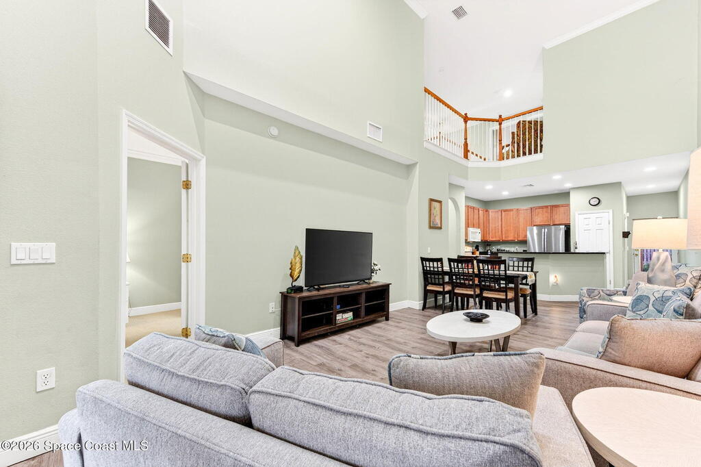 Available March 1! Prof. Photos' Coming! Beachside Townhome with plush landscaping, newly screened private porch & 2 car garage. A nicely appointed 4 bedroom, 3 1/2 bath fully furnished. New Vinyl Plank Flooring through the kitchen & living space. One Year new Stylish Living Room Furniture: New sofa set; love seat, sofa, recliner, side tables, coffee table, lamps!. Upgraded faucets recently installed. Great location for a vacation, relocation or corporate rental. 2 of the bedrooms are full suites. One primary suite is on the first floor with King bed and one on the second floor. One guest room has a queen bed. One is an office type set up. A bed can be added at tenants request. All the comforts of home and more! Washer & Dryer. 2 car garage. Plus a Clubhouse with heated pool. GREAT location to the KSC, 528 to Orlando and the of course, the beach. Public Beach access located East of Holiday Inn. Pets will be considered. Pricing packages available for easy corporate rental