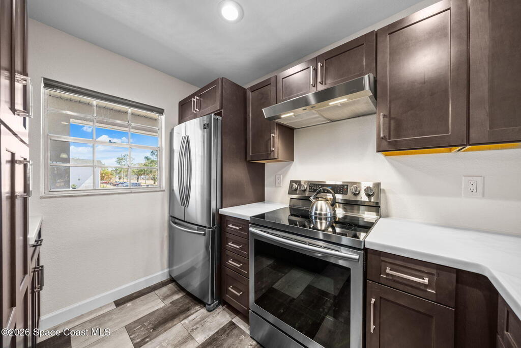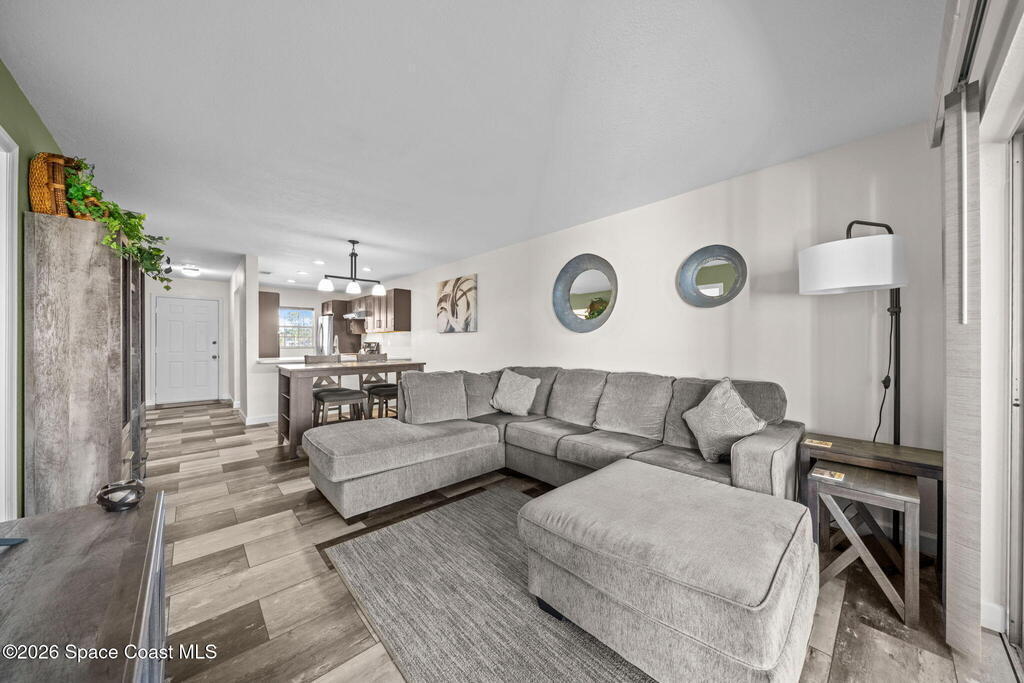 Welcome to 1900 Knox McRae Drive, Unit 210H, in Titusville, Florida--immaculate maintained second-floor condo offering comfort, style, and convenience. This freshly painted 2-bedroom, 2-bathroom home features a desirable open floor plan with beautiful vinyl plank flooring throughout, creating a modern feel.The remodeled kitchen is a standout, showcasing upgraded cabinetry, corrian countertops, a breakfast bar, and an island design--perfect for both everyday living and entertaining. New stainless steel appliances Home also features updated doors, fixtures, and bathroom vanities that add a fresh, contemporary touch throughout the home.Step outside to the screened back balcony, which includes additional storage and overlooks a peaceful pond--an ideal spot to relax and unwind. The AC system is approximately 6 years old. The HOA fee of $400 per month includes water, trash, and cable for added convenience and value. Ideally located in the heart of Titusville surrounded by everything.