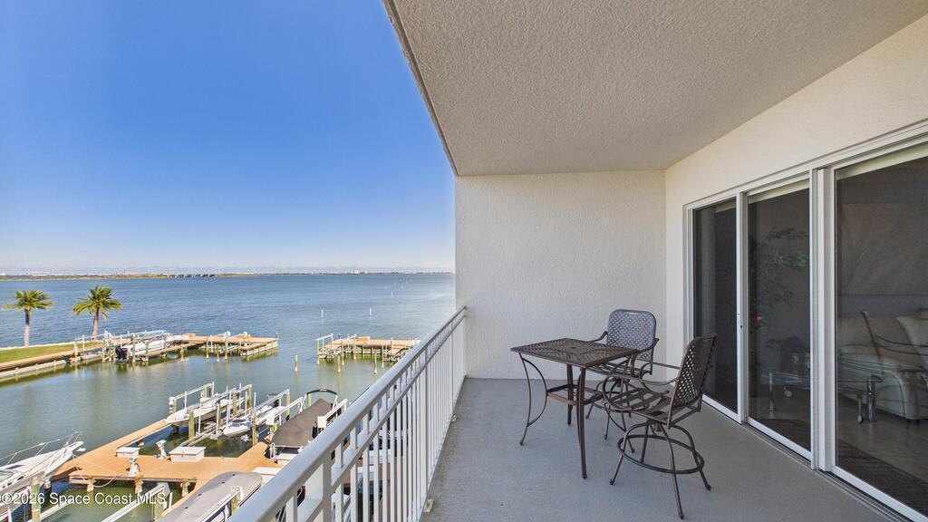 WATERFRONT CONDO WITH YOUR OWN PRIVATE BOAT SLIP!! This awesome riverfront condo is a dream come true with breath taking views of the Banana River , 3 bedrooms, 3 baths, pool, boat slip #12 with lift. Private gated community. This condo is ready to move in and began your fun with your boat and views of the water. 3 bedrooms with walk in closets. Master has it's own sliding glass doors to the balcony. 2 Parking spaces #302 and Storage Closet in the garage. See the Space Launches and Cruise Ships from your Balcony!!