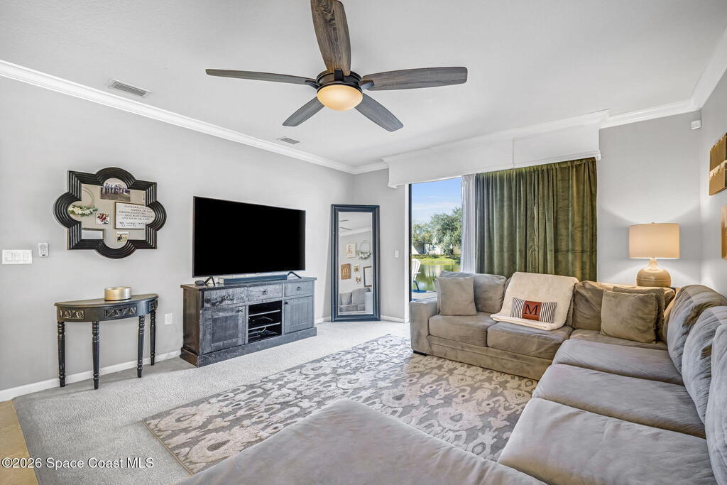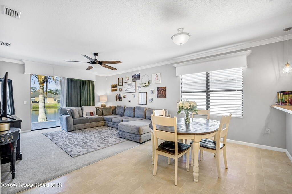 545 Dryden is a beautiful, well maintained four bedroom two bathroom home. With a new roof and upgraded maintenance/utilities throughout this home is turn key. You will immediately find this layout to be very well thought out, with multiple options for several primary areas and plenty of square footage to work with. The Master suite is on the first floor, and features a walk in closet, and soaking. tub in the master bathroom. Two other bedrooms finish compliment the first floor and have a flex space between them that could be used for an office/den or playroom for the littles! Upstairs, you will find a spacious bonus room could be made into a theater, game room or another bedroom if needed. Catch a sunset on your deck overlooking the water facing west. This incredible lakeside home is nestled in quiet and well maintained Fern Meadows subdivision. This community is conveniently located close to I-95 for quick commutes and just minutes from 528 Roof 2026 AC 08/22 WH 25
