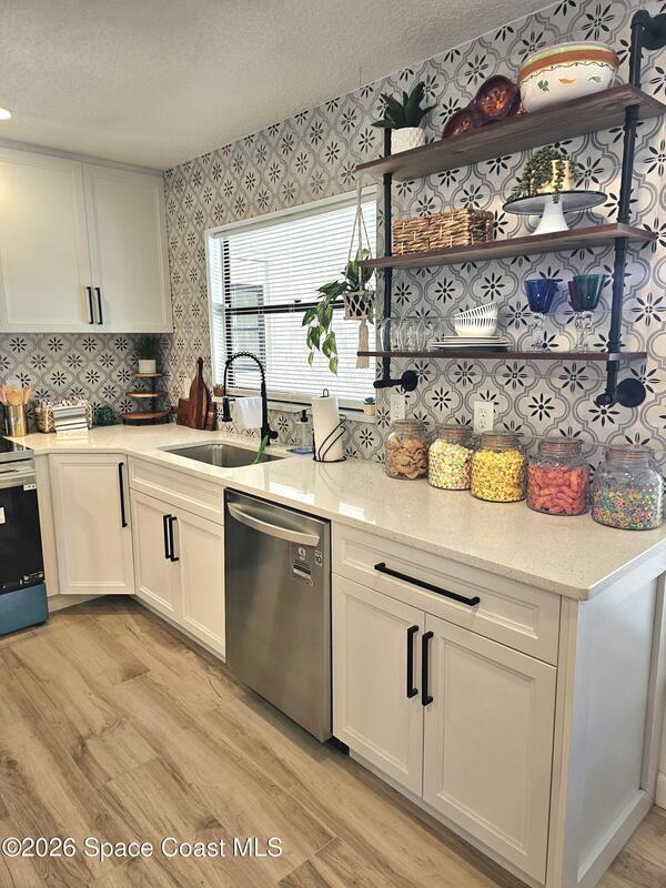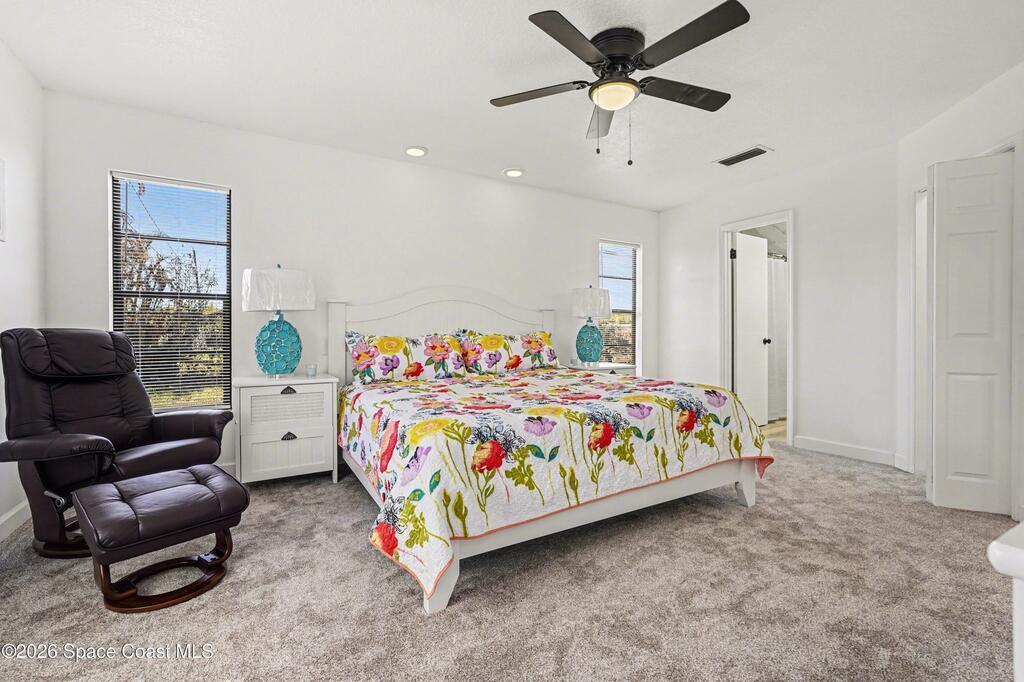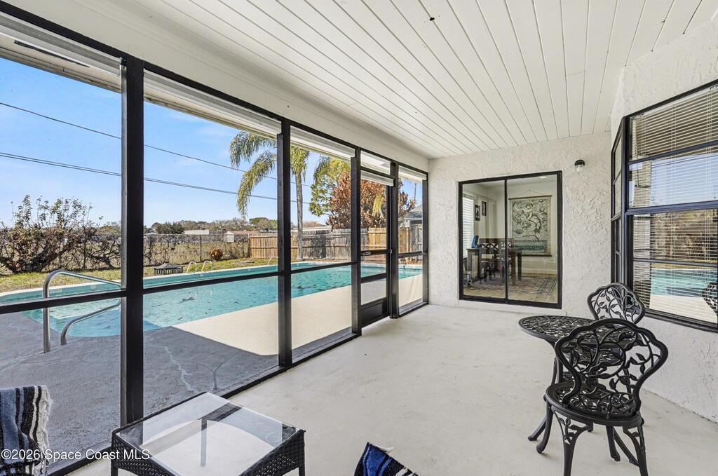 Welcome to this stunning pool home in NE Palm Bay. Offering over 2100 sq ft of living area with an office, beautifully designed kitchen, dining area, relaxing living room, family room, 2 full bathrooms and 4 spacious bedrooms. Porcelain tile flooring through the main living area, new carpet in the bedrooms, fresh paint, new roof (2025), new water heater (2026), and interior laundry. The screened back patio overlooks the inviting pool and back yard. An oversized 2 car garage offers tons of space for storage. This one is a must see!
