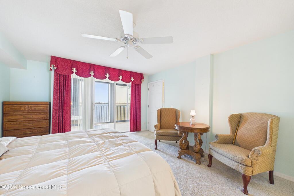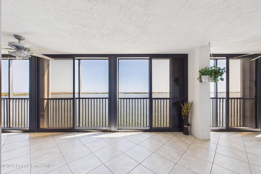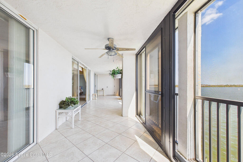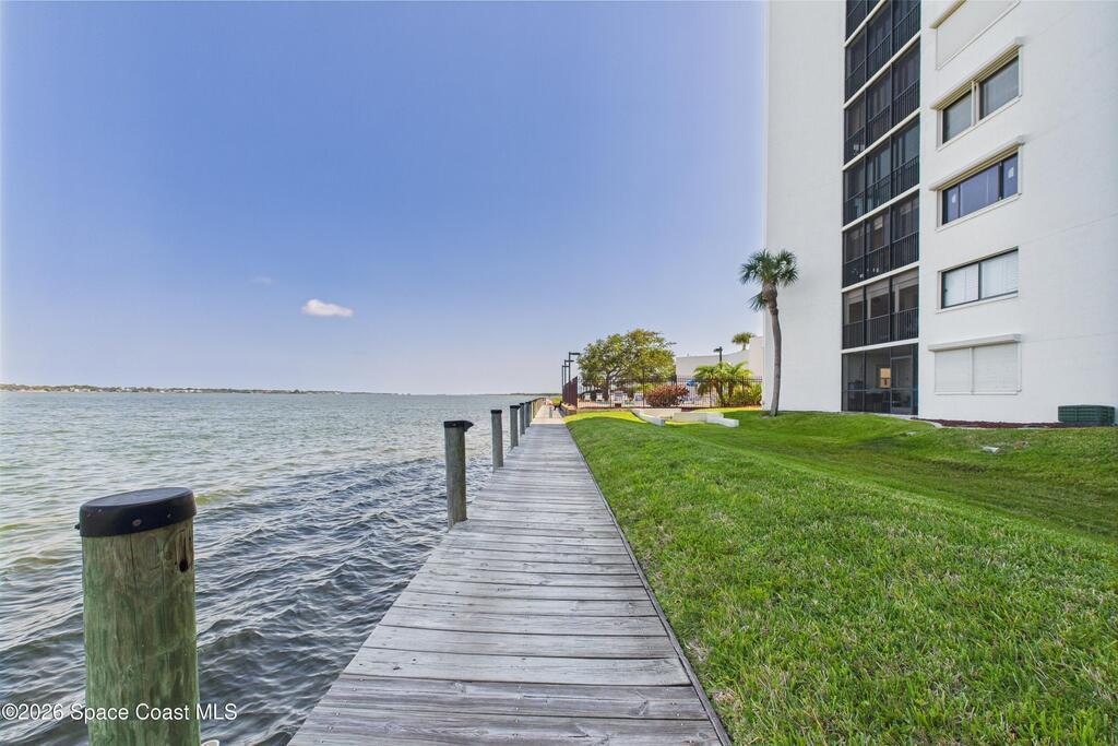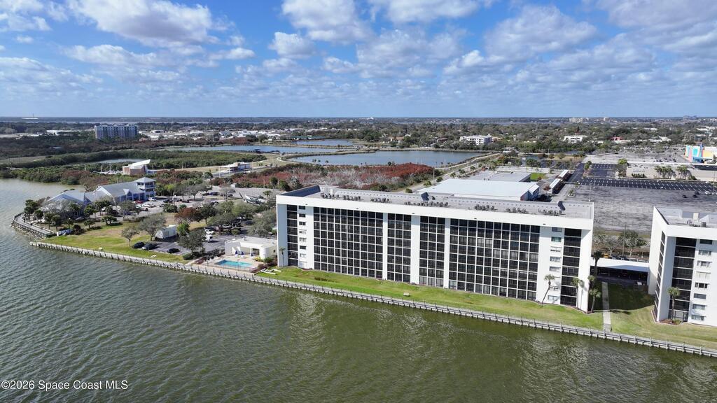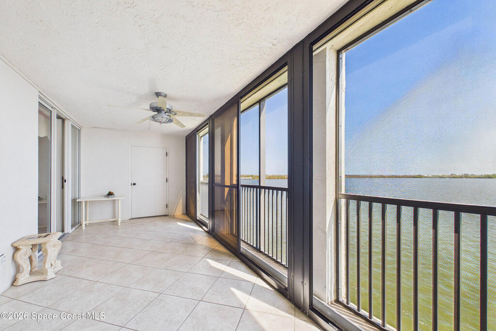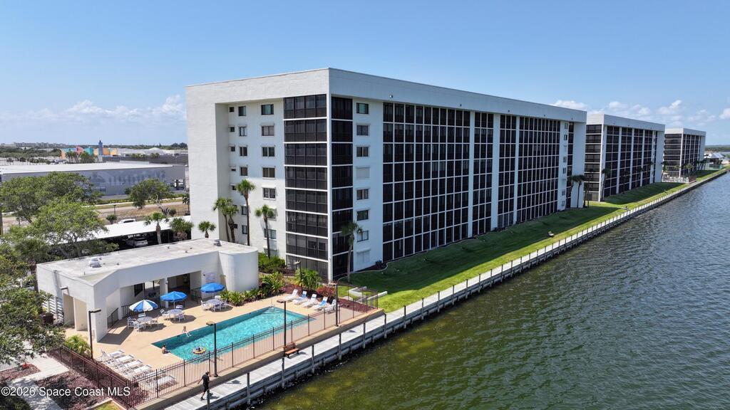 Experience elevated waterfront living in this 5th-floor residence overlooking open water on Sykes Creek. Located in a gated community, this spacious 3-bedroom, 2-bath condo offers over 1,900 sq ft of breathtaking views. Step inside a split-bedroom floor plan, with your primary suite opening directly to the water! The primary bath features a large walk-in closet, a beautiful garden tub, and a separate shower. Two large guest bedrooms with one offering an additional oversized walk-in closet. Relax on your private screened balcony with your front-row seat to dolphins and manatees playing below, and rocket launches illuminating the sky. Located in the highly sought-after Merritt Towers, residents enjoy: two sparkling pools & hot tub, clubhouse with full kitchen, library & sauna, dog park, tennis & pickle-ball courts. Milestone inspections have been completed with flying colors! Fantastic location --- near new hospital, shopping, dining, and easy access to Port Canaveral and Cocoa Beach!!