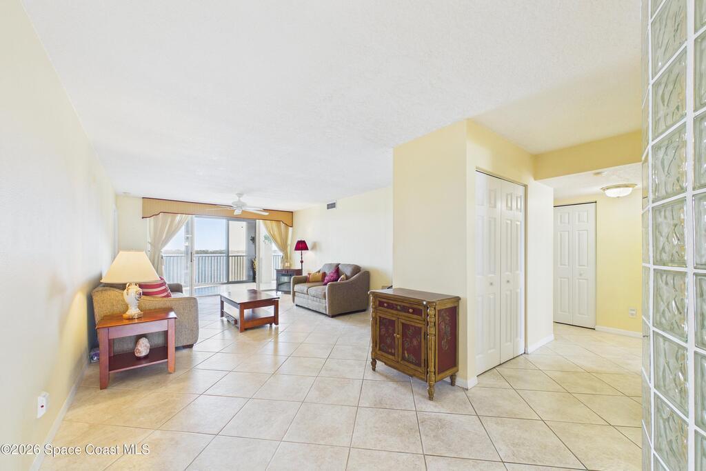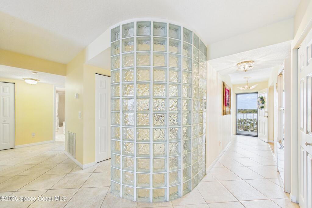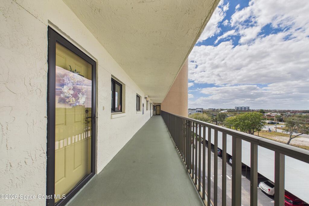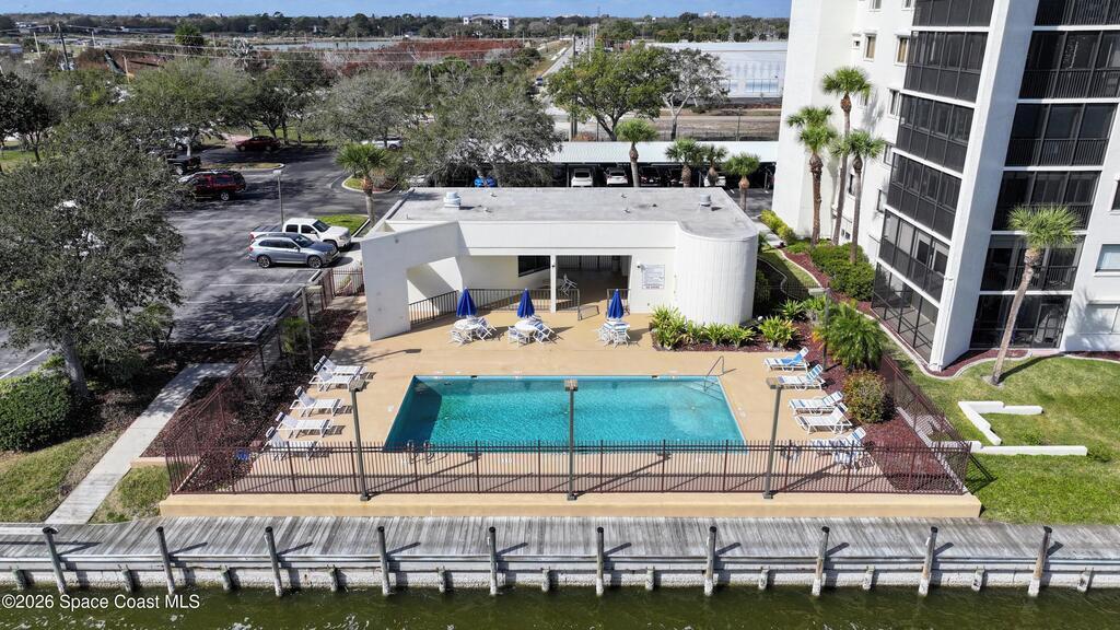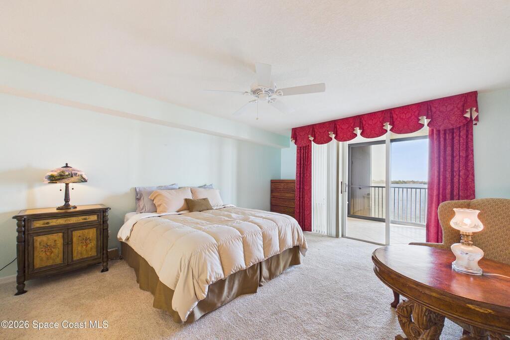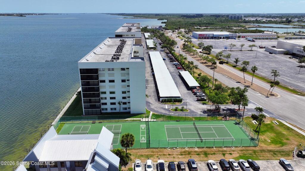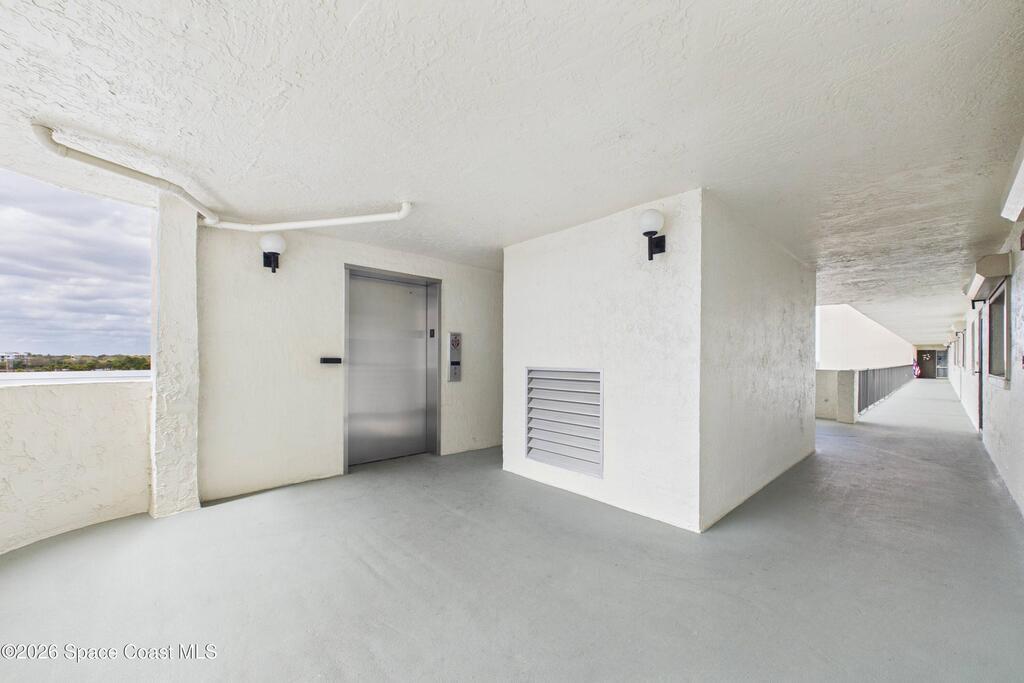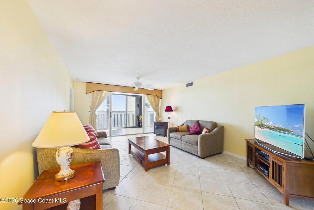 Experience elevated waterfront living in this 5th-floor residence overlooking open water on Sykes Creek. Located in a gated community, this spacious 3-bedroom, 2-bath condo offers over 1,900 sq ft of breathtaking views. Step inside a split-bedroom floor plan, with your primary suite opening directly to the water! The primary bath features a large walk-in closet, a beautiful garden tub, and a separate shower. Two large guest bedrooms with one offering an additional oversized walk-in closet. Relax on your private screened balcony with your front-row seat to dolphins and manatees playing below, and rocket launches illuminating the sky. Located in the highly sought-after Merritt Towers, residents enjoy: two sparkling pools & hot tub, clubhouse with full kitchen, library & sauna, dog park, tennis & pickle-ball courts. Milestone inspections have been completed with flying colors! Fantastic location --- near new hospital, shopping, dining, and easy access to Port Canaveral and Cocoa Beach!!