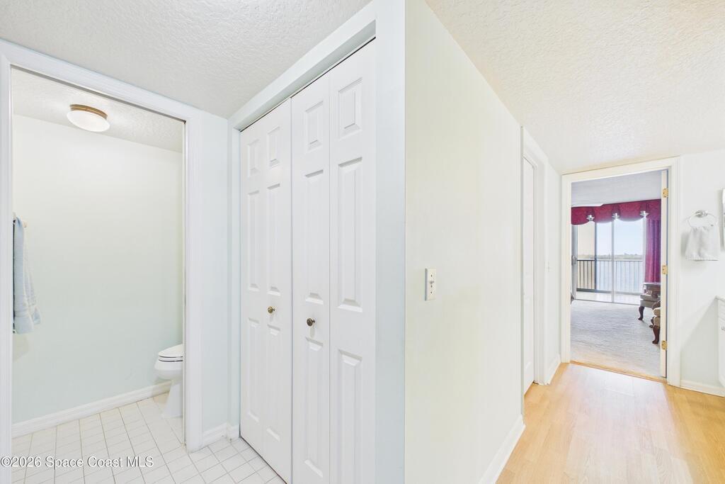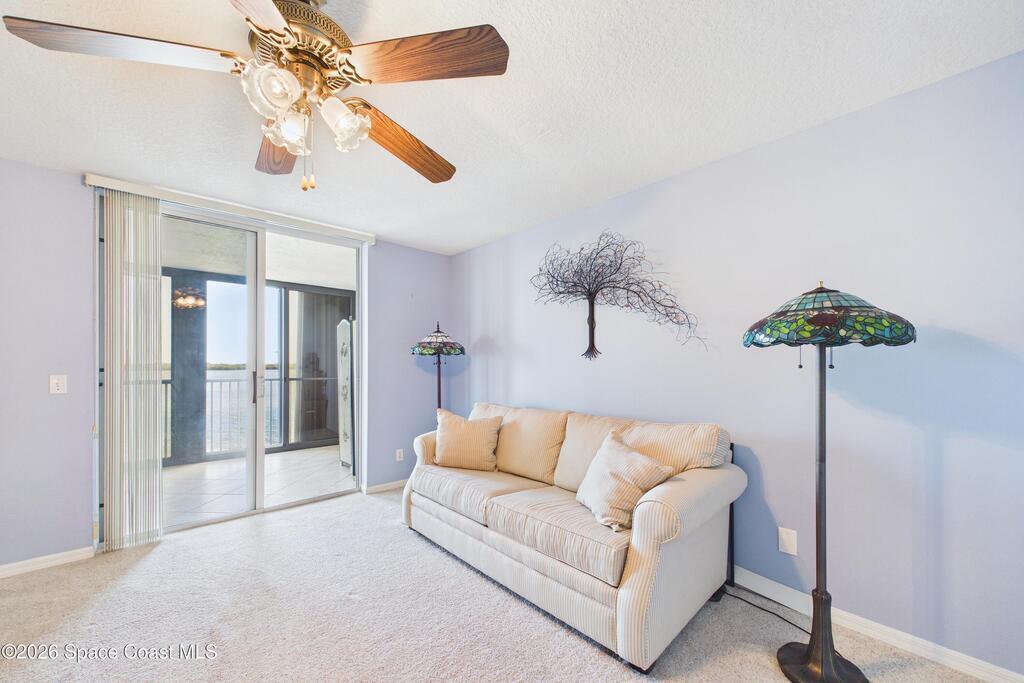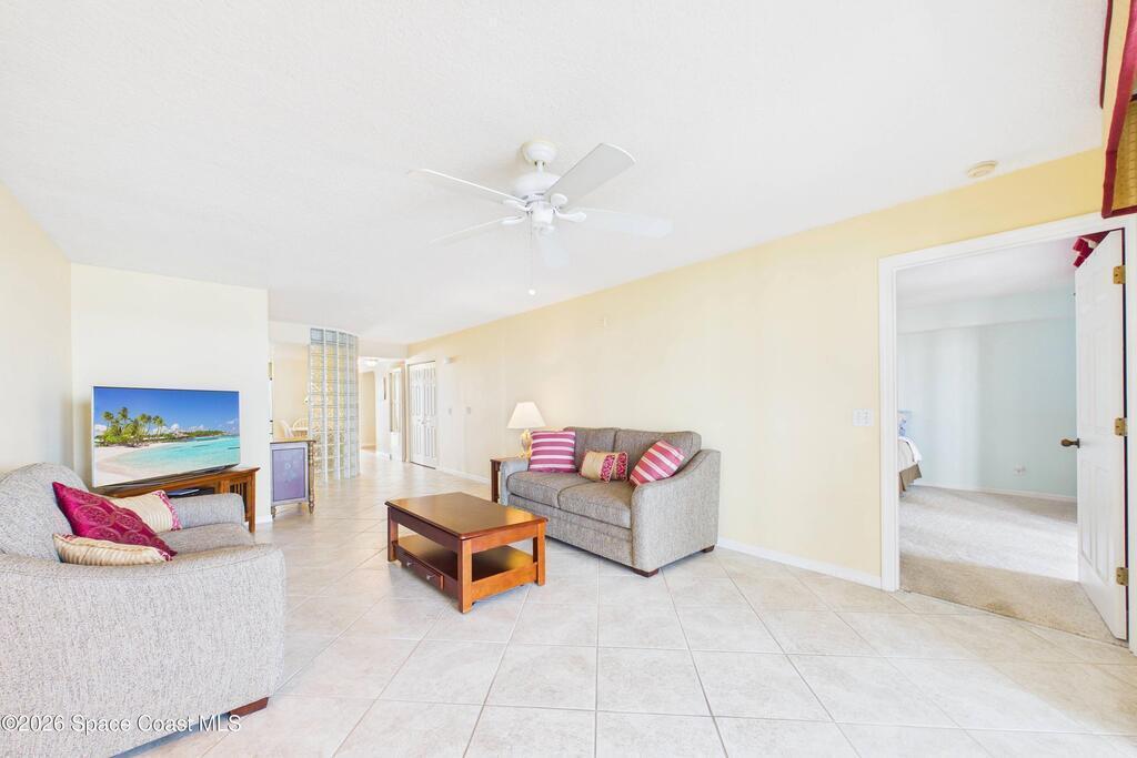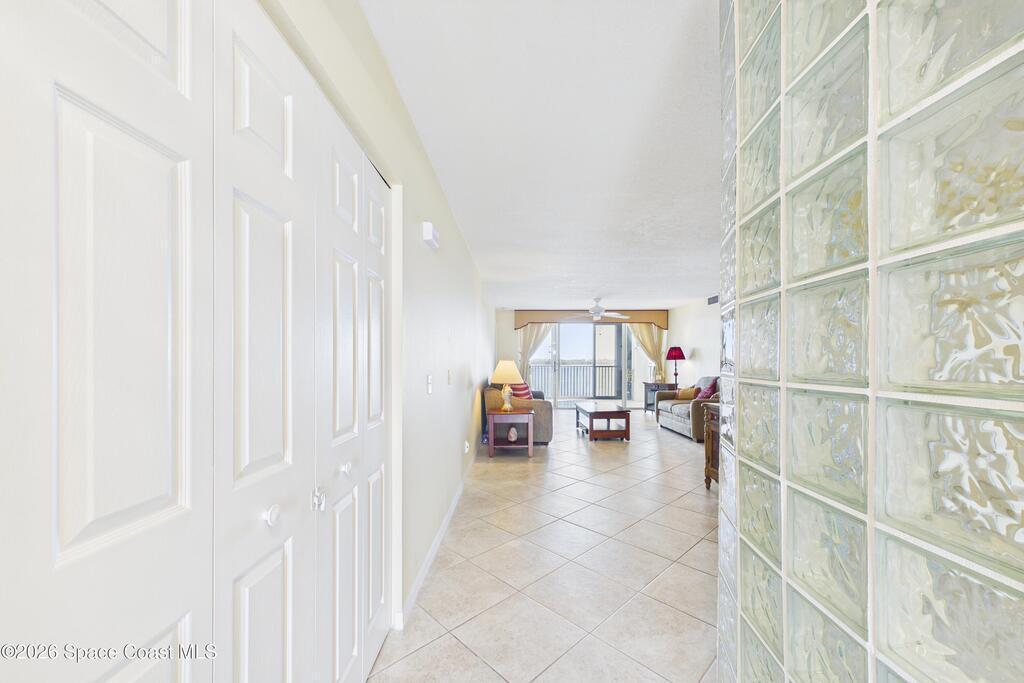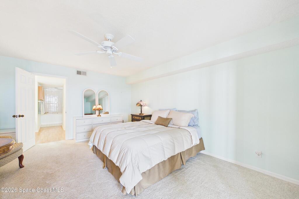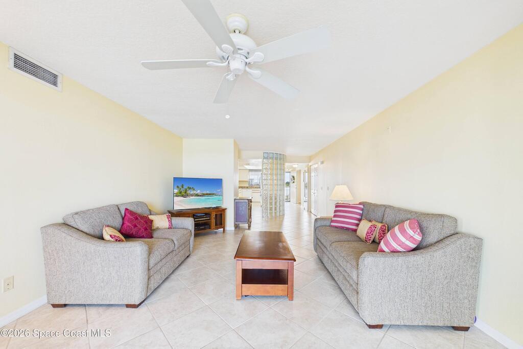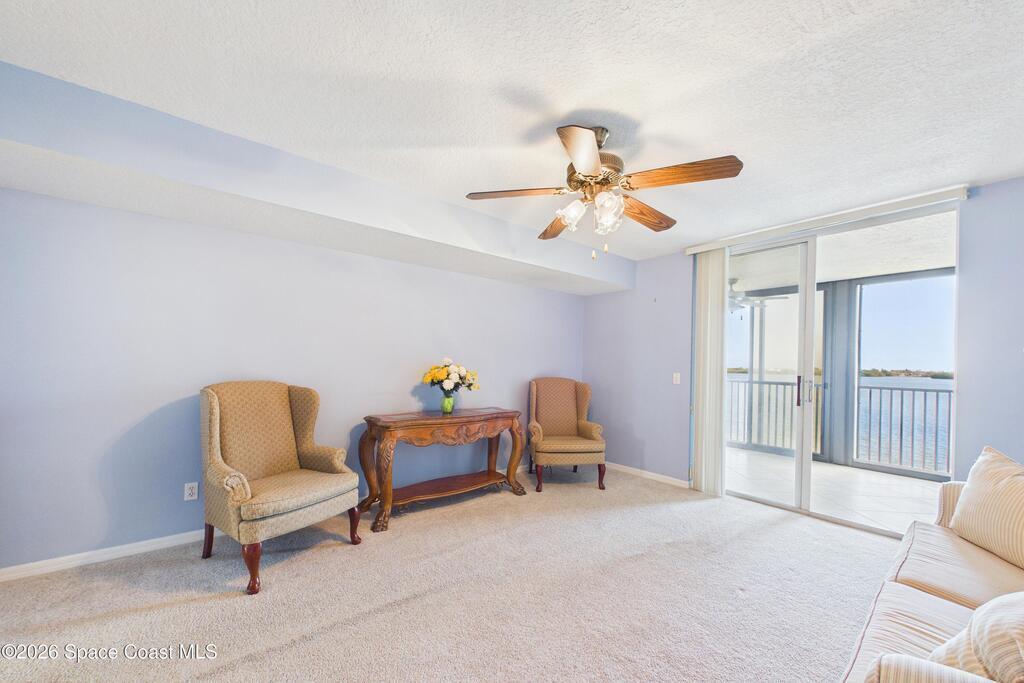 Experience elevated waterfront living in this 5th-floor residence overlooking open water on Sykes Creek. Located in a gated community, this spacious 3-bedroom, 2-bath condo offers over 1,900 sq ft of breathtaking views. Step inside a split-bedroom floor plan, with your primary suite opening directly to the water! The primary bath features a large walk-in closet, a beautiful garden tub, and a separate shower. Two large guest bedrooms with one offering an additional oversized walk-in closet. Relax on your private screened balcony with your front-row seat to dolphins and manatees playing below, and rocket launches illuminating the sky. Located in the highly sought-after Merritt Towers, residents enjoy: two sparkling pools & hot tub, clubhouse with full kitchen, library & sauna, dog park, tennis & pickle-ball courts. Milestone inspections have been completed with flying colors! Fantastic location --- near new hospital, shopping, dining, and easy access to Port Canaveral and Cocoa Beach!!
