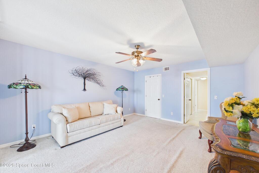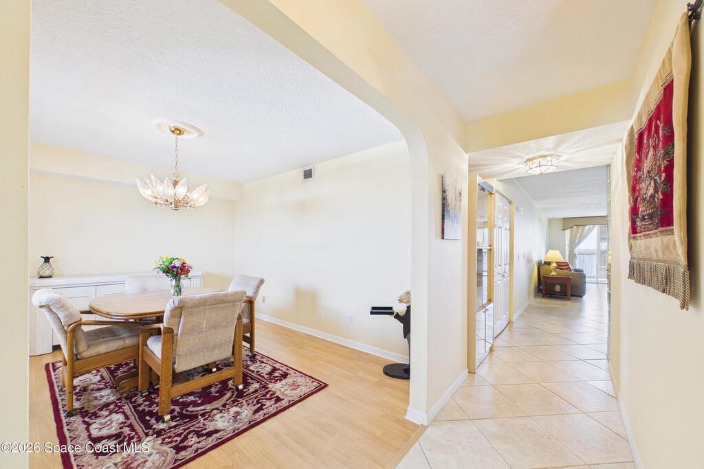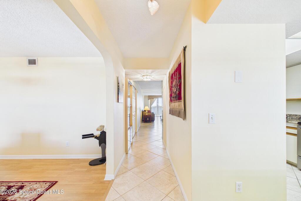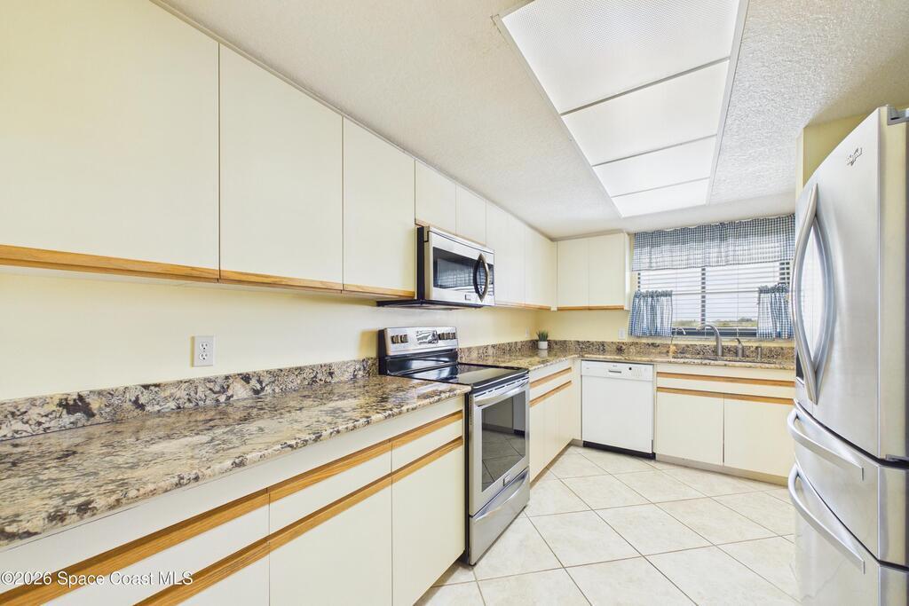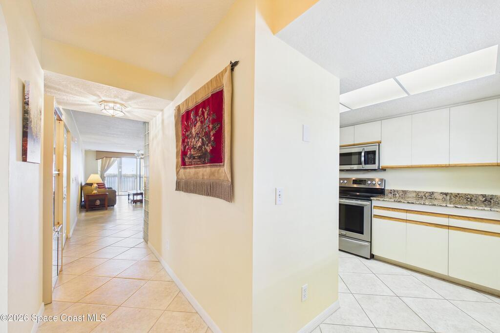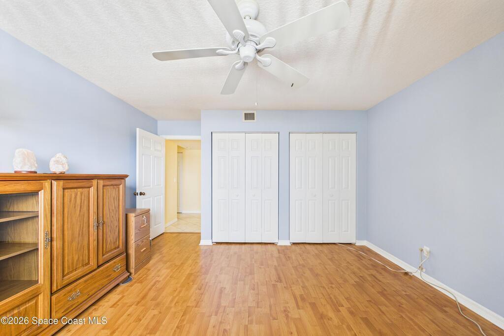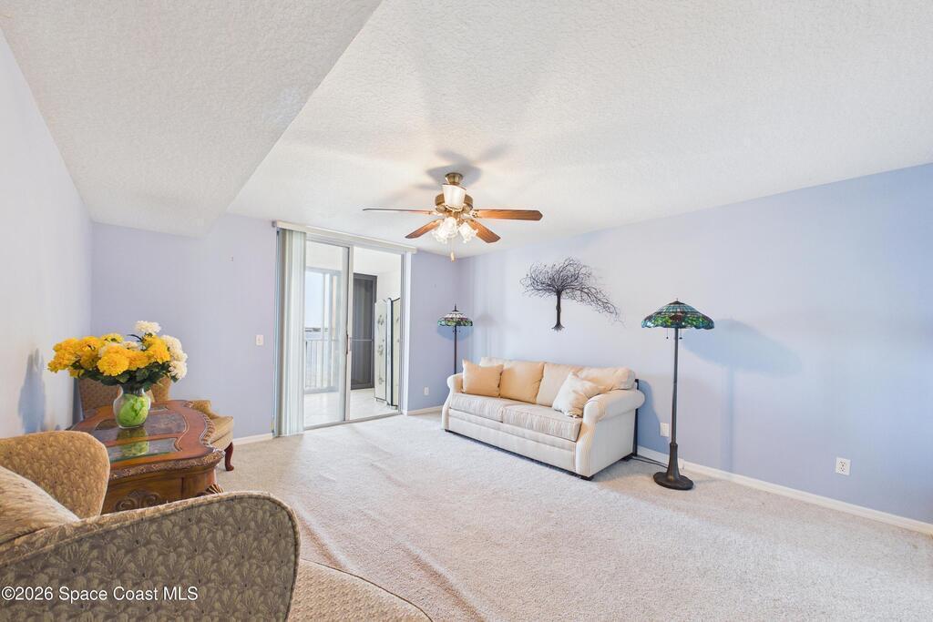 Experience elevated waterfront living in this 5th-floor residence overlooking open water on Sykes Creek. Located in a gated community, this spacious 3-bedroom, 2-bath condo offers over 1,900 sq ft of breathtaking views. Step inside a split-bedroom floor plan, with your primary suite opening directly to the water! The primary bath features a large walk-in closet, a beautiful garden tub, and a separate shower. Two large guest bedrooms with one offering an additional oversized walk-in closet. Relax on your private screened balcony with your front-row seat to dolphins and manatees playing below, and rocket launches illuminating the sky. Located in the highly sought-after Merritt Towers, residents enjoy: two sparkling pools & hot tub, clubhouse with full kitchen, library & sauna, dog park, tennis & pickle-ball courts. Milestone inspections have been completed with flying colors! Fantastic location --- near new hospital, shopping, dining, and easy access to Port Canaveral and Cocoa Beach!!