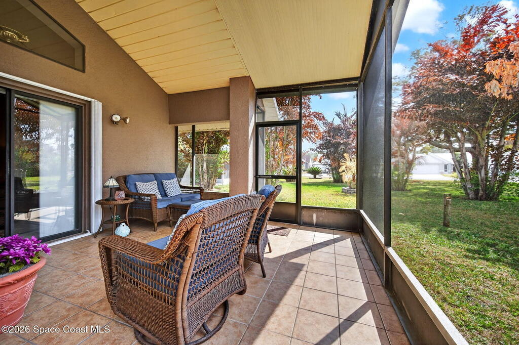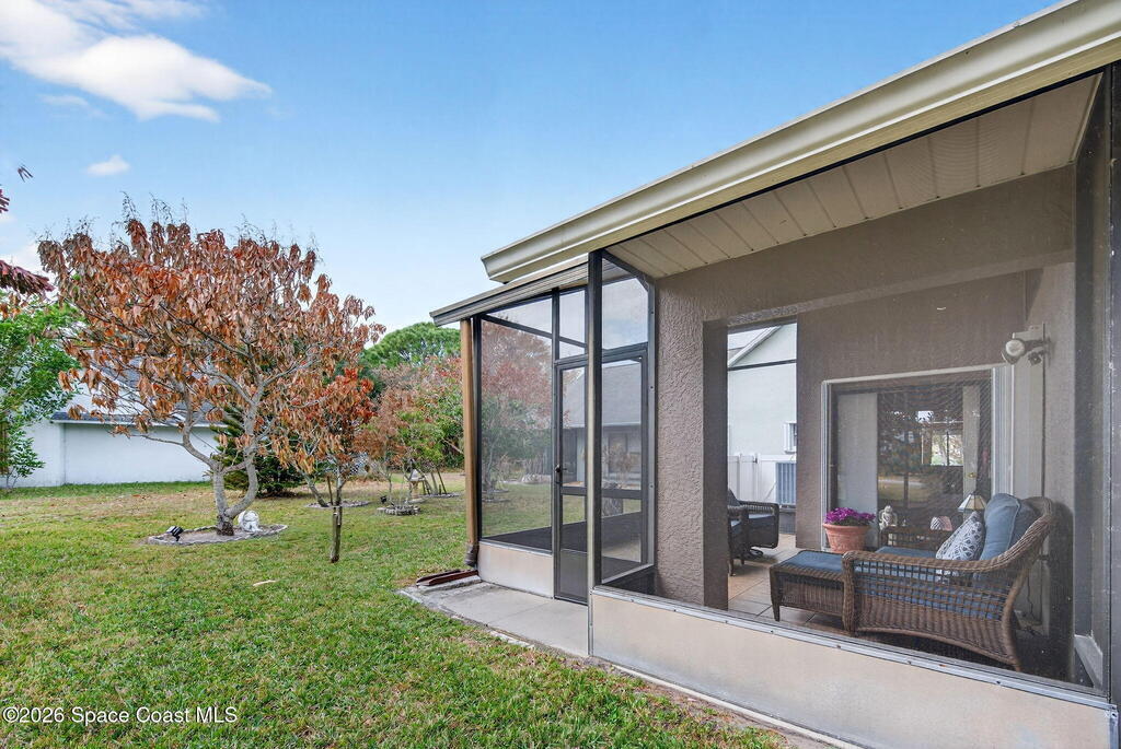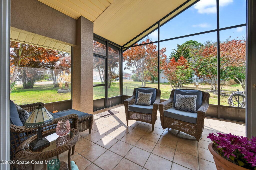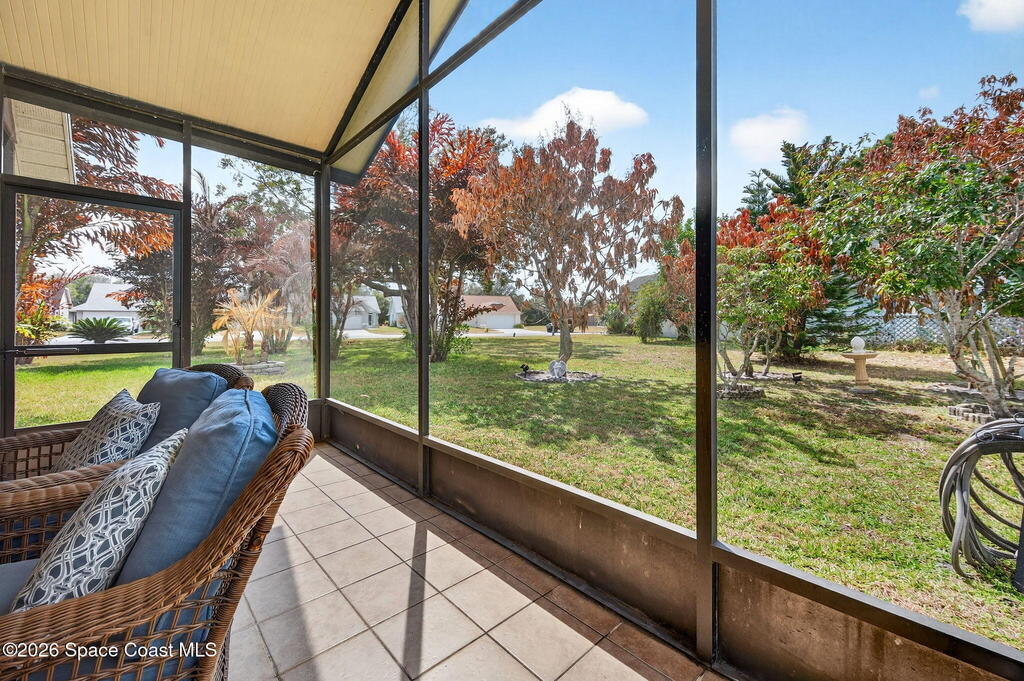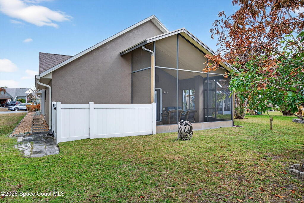 GREAT LOCATION NEAR the LAKE WASHIGTON RD AREA!!! Neat and Clean and Well Maintained 3 BR 2 BA Central Living Area Plan with Many Updates!! New Roof 2026 (with Transferable Warranty by Space Coast Roofing), Upgraded Cabinets in Kit & Baths, Statement Range-hood, Built-in Wine Fridge, and Granite Counter Tops w/Decorative Backsplash!! Upgraded Primary Suite and Bath. Tile and Laminate Flooring, and Large Screen Porch!! Recent Upgrades HVAC 2022, WH 2023, Paint Inside and Out 2021, Hurricane Accordion Shutters 2022, Cellular Shades 2021, New Stove and Microwave with-in last 2 years ((No Rentals or Fences Allowed, per HOA Regs))