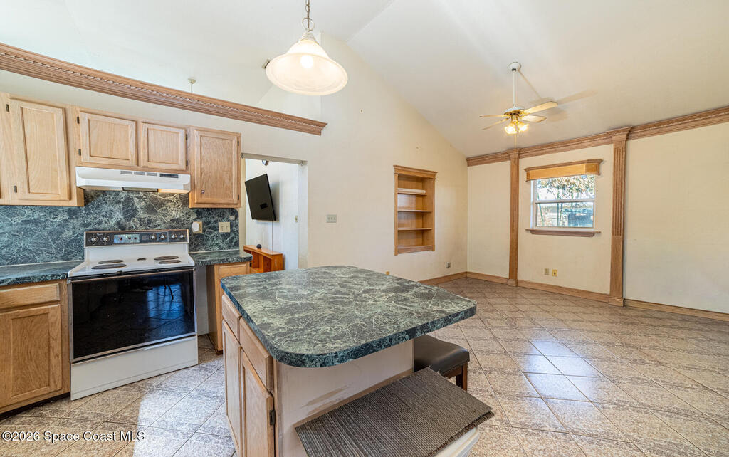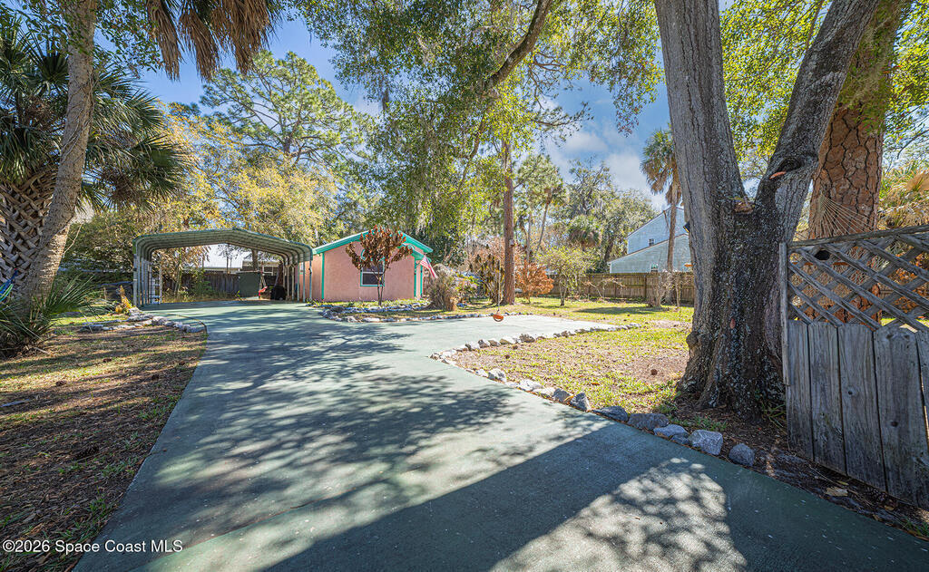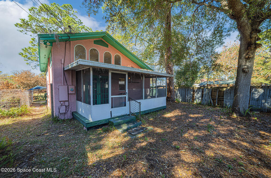 Cottage dreamhouse ready for you to relax. Everything is here! Fully furnished in the heart of Titusville. This amazing vaulted ceiling dream features an oversize lot with the option to purchase an additional lot. There is 3 sheds and a fenced in dog run. Open plan with a master bath to die for! The full marble shower is just right to wash your cares away. The amazing woodwork throughout, makes this home an unique find. There is a lot next door you can add for more room to run.