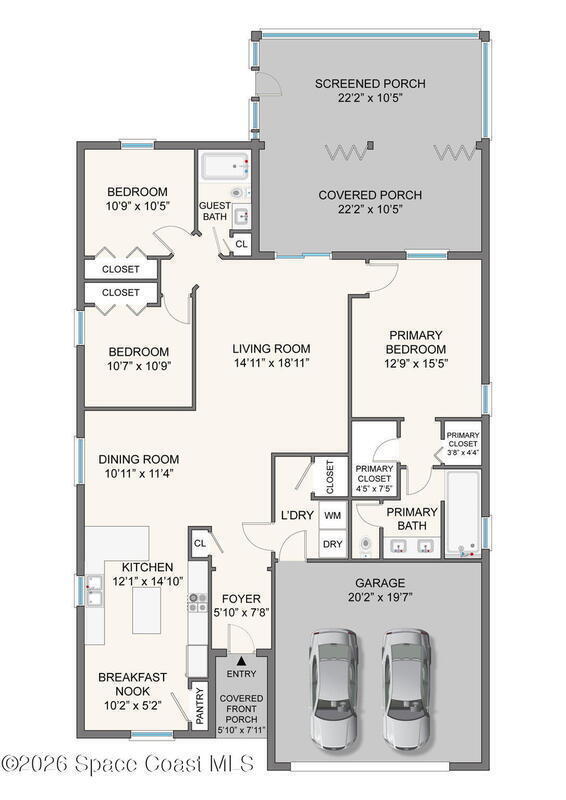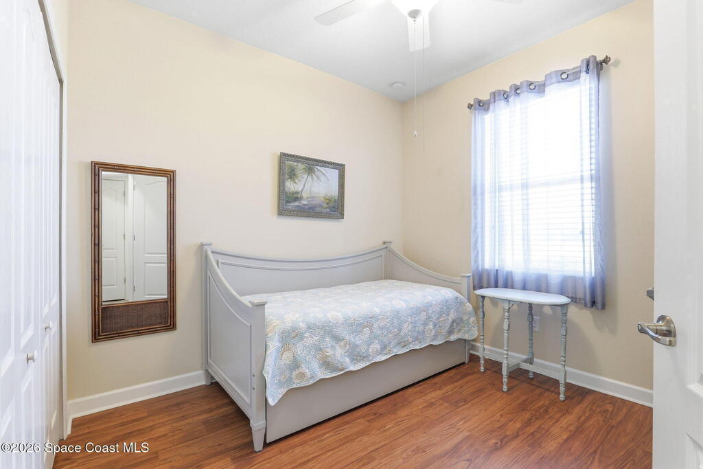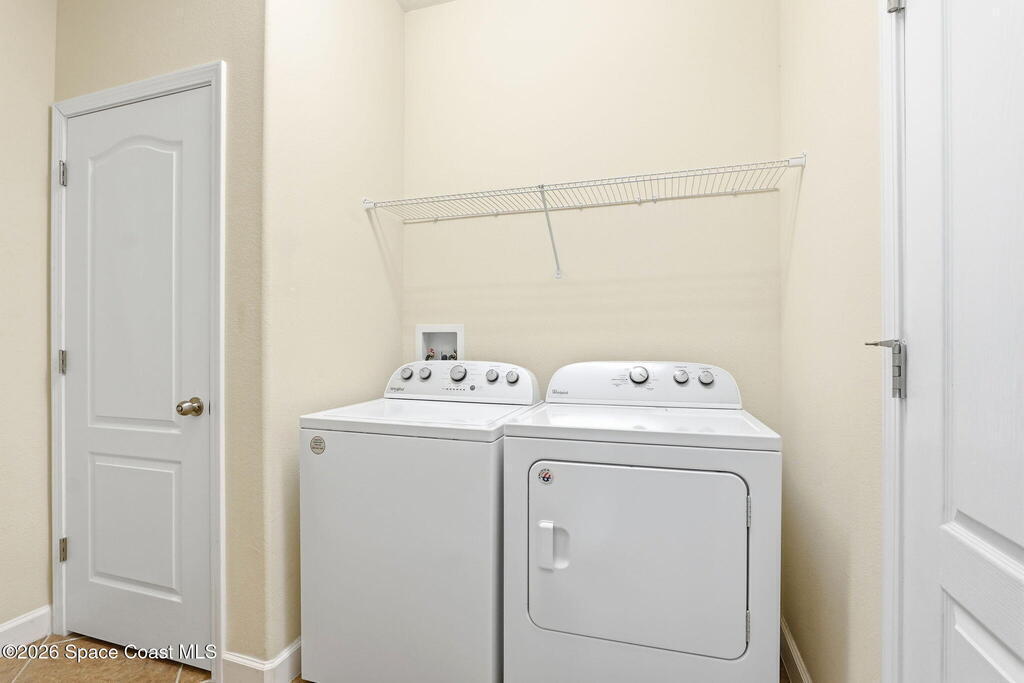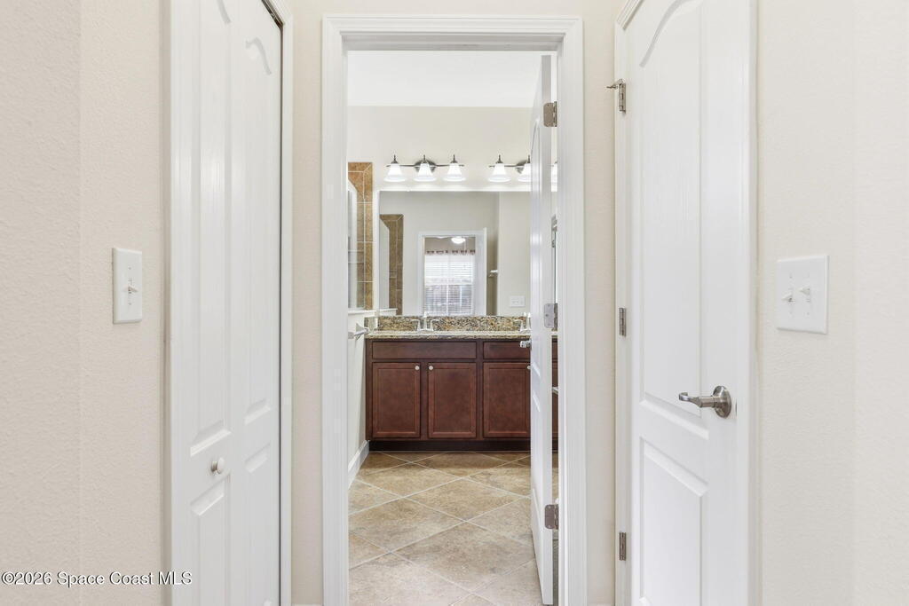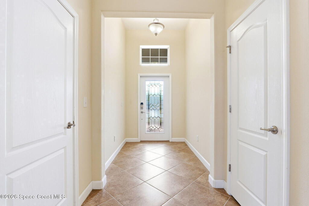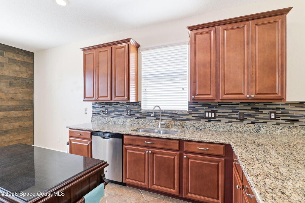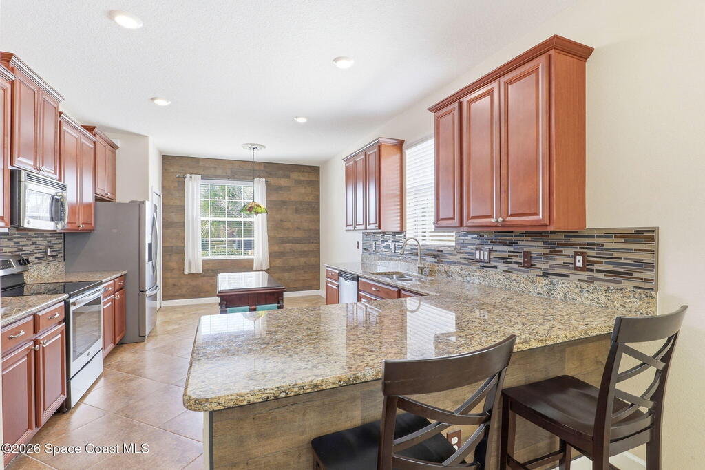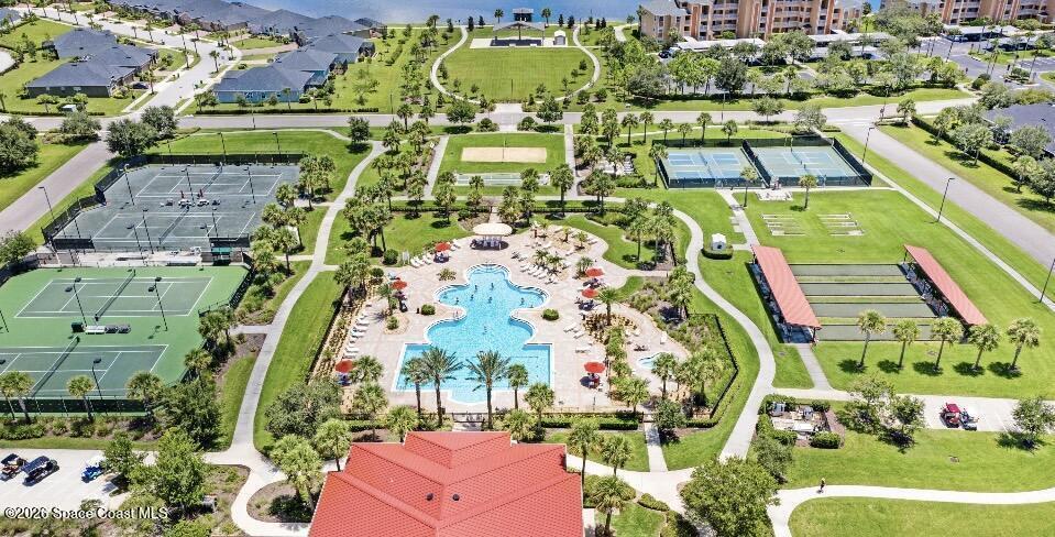 Wake up to water views every day in this beautifully maintained 3BR/2BA home in Viera's premier 55+ maintenance-free community. From the moment you walk in, your eyes are drawn straight through the home to the lake. Built in 2015, this open split floor plan features upgraded diagonal tile throughout main areas and baths, newer laminate flooring in all bedrooms (no carpet), and accordion storm shutters for added peace of mind.The kitchen is the true heart of the home--granite countertops, stainless steel appliances, maple cabinetry, mosaic backsplash, breakfast nook, and formal dining space--perfect for entertaining. The primary suite offers serene lake views, lanai access, dual closets, granite double vanity, and a seamless walk-in shower.Step outside to your extended screened lanai and enjoy rare backyard privacy with no rear neighbors--just peaceful water views. Located near the private resident gate for convenience.Heritage Isle offers lawn care included plus resort-style