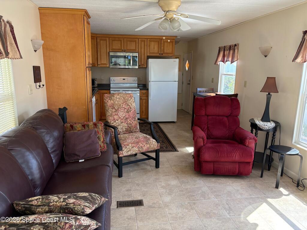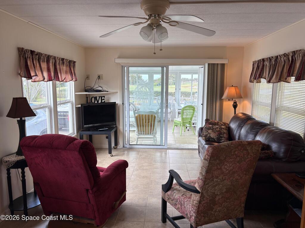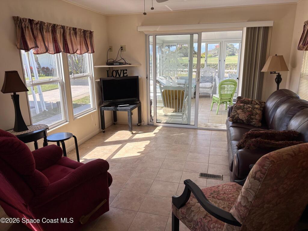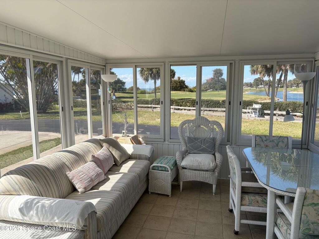 Owner financing possible on this Beautifully renovated and meticulously kept Beachside home in a fabulous location, directly across the street from Spessard Holland Golf Course and just steps to the Indian River!! Spacious, bright open floor plan leads to a fully enclosed front porch, surrounded by Acrylic windows that embrace stunning views of the beautifully landscaped golf course, pond and Indian river. Sheet rock insulation, new windows & storm shutters throughout, new sub floor (3/4 inch) and porcelain tile. Membrane 50 yr. roof, coated every 5 years. New remodeled kitchen, all new plumbing, newer A/C & water heater. Leisure Living Estates is a 55+ Ocean to riverfront community unlike any other.The quaint streets are private and welcoming. This amazing community offers a clubhouse, deeded beach/river access & fishing off the pier! Enjoy low cost, carefree beachside living with just $141 monthly HOA fees that include cable/internet, wifi & basic lawn care service. YOU OWN THE LAND!