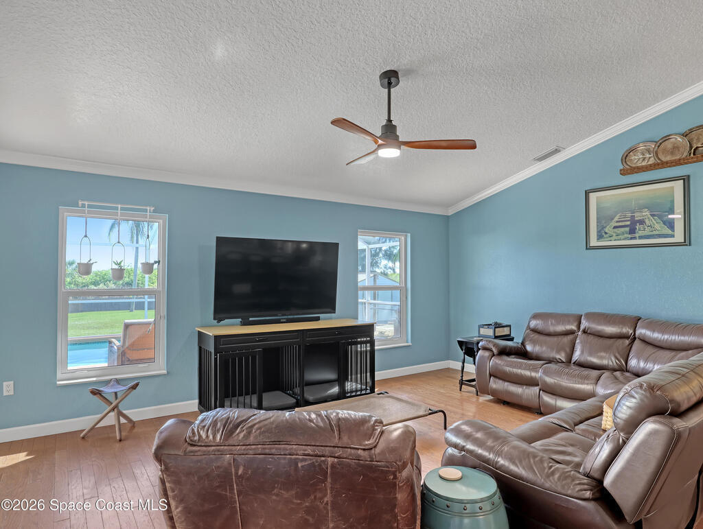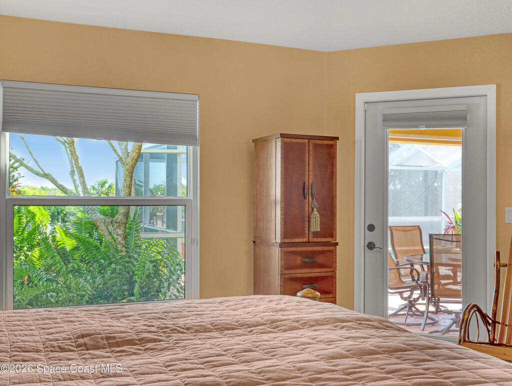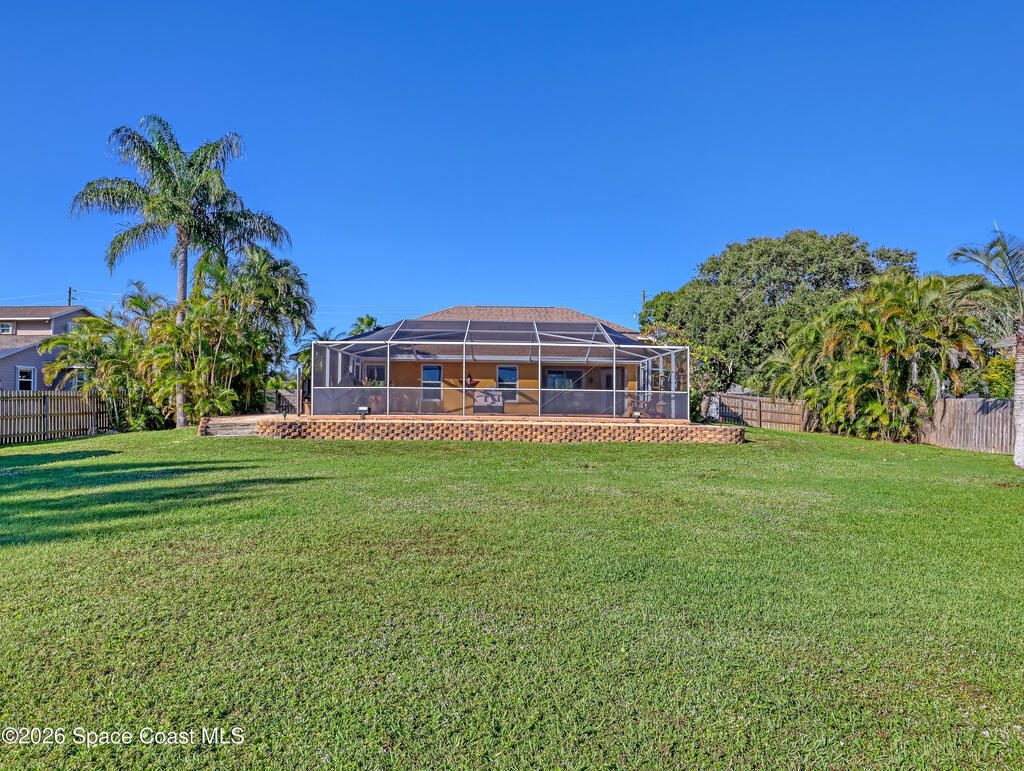 There's a nice feel to this Merritt Island pool home -- comfortable, functional, and ready to enjoy. The kitchen anchors the interior with granite counters and stainless appliances, while a mix of hard-surface and carpet flooring keeps everyday living practical. Helpful upgrades include pull-out shelving, Ring doorbell, Nest thermostat, new double-paned windows (2025), and full storm shutters.The screened lanai surrounds a recently resurfaced, solar-heated pool. An outdoor shower helps keep the inside dry, the side deck is great for grilling or casual dinners, and a firepit creates a relaxing gathering space. A storage shed adds extra room for tools and gear.Behind the home, the canal offers kayak and canoe access, and the yard features producing fruit trees -- mango, star fruit, jackfruit, lemon, and avocado.No HOA.