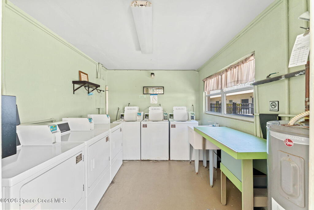 Welcome to Windward West, where comfort meets convenience just steps from the beach. Enjoy sun, sand, and surf with an easy walk to the beach. This ideally located community sits near the iconic Cocoa Beach Pier and features a private trail that connects directly to the Publix shopping plaza, making every day errands effortless. This ground-floor, 2-bedroom corner unit is perfectly positioned only a few steps from the heated pool and onsite laundry facilities. The home features fresh interior paint, a tankless water heater, and tile flooring throughout. Assigned parking, ample guest parking, and a dedicated storage building for bikes add to the ease of living. The HOA includes internet, cable, sewer, and water. Windward West is a quiet, well-maintained community close to restaurants, downtown Cocoa Beach, Port Canaveral, and just about an hour from Orlando's world-class attractions. Experience the best of the beach lifestyle, come see it for yourself!