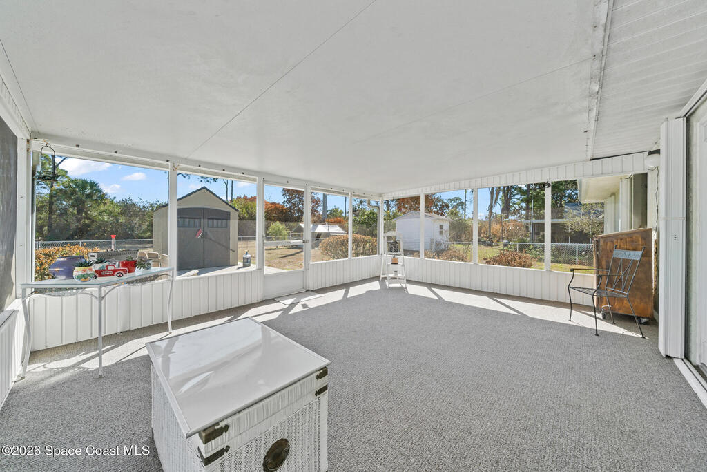Let NEW BEGINNINGS start in this WELL MAINTAINED 3 bedroom 2 full bath home. Step through the FRENCH DOORS with enclosed blinds leading to the SPACIOUS screened in back patio where you can feast after cooking BBQ outside in the endless feel backyard big enough for a pool! Backyard SHED included too!! Cook up your sides in the new like kitchen with granite counter tops, center island, two pull out drawer fridge, glass top stove with double convection oven. Enjoy relaxing in the cozy living area where you can watch TV that comes with the home if preferred. Master Bedroom has barn door at the entrance of bathroom. Master bath has hand accessible rails to feel secure. Home also has 3 pocket doors for privacy and space. INDOOR washer/dryer hookups. Two car garage comes with a workshop and a fridge that conveys. Other furnishings are negotiable! Enjoy convenience with ACCORDION HURRICANE SHUTTERS and GUTTER LEAF GUARDS. SCHEDULE A SHOWING TODAY!