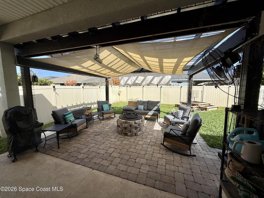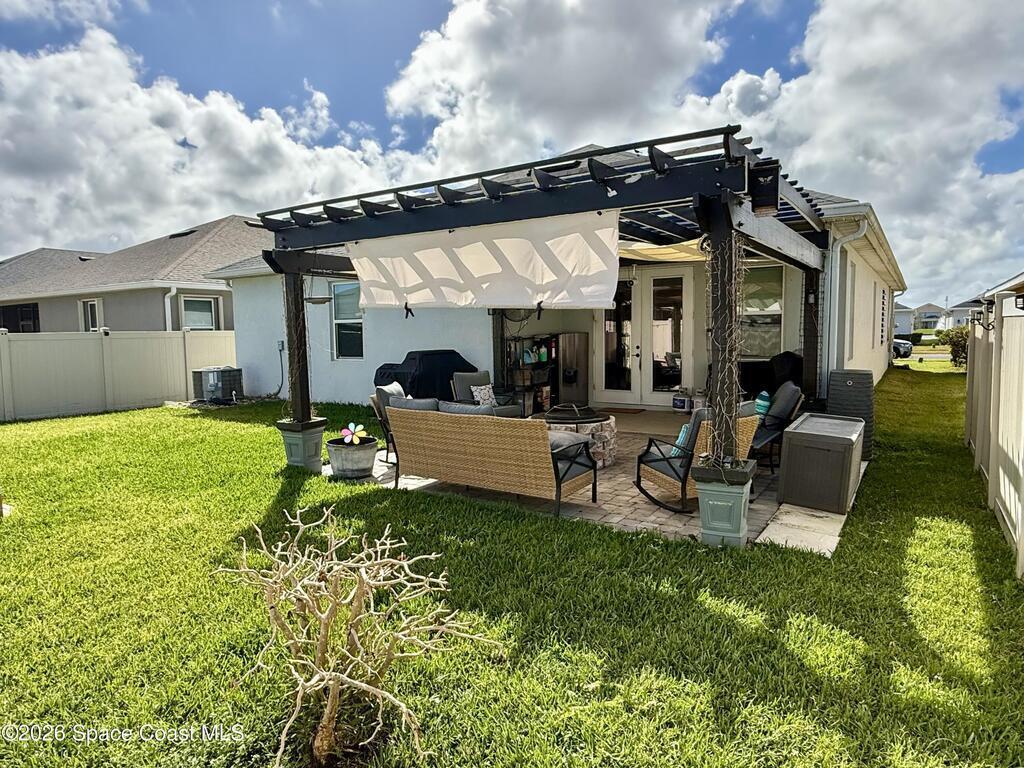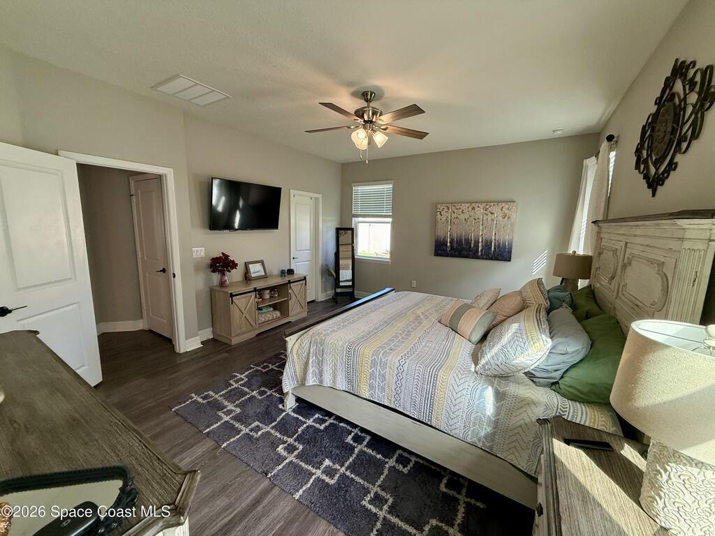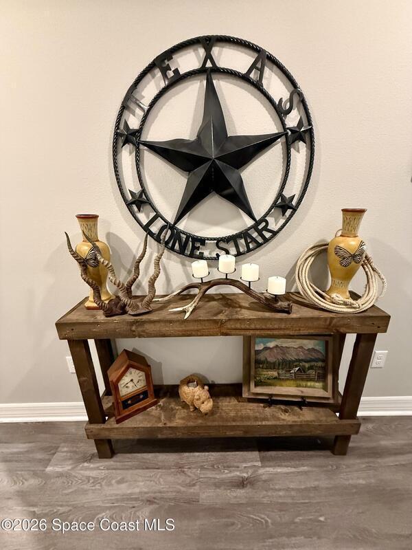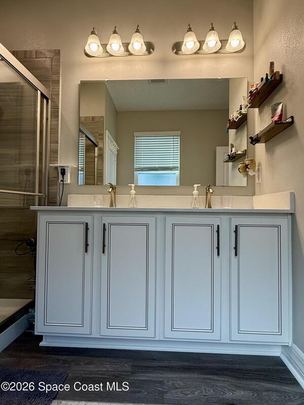 Beautifully maintained 4-bedroom, 2-bath home with a 2-car garage located in desirable West Melbourne. This light and bright residence offers a spacious open floor plan, with high ceilings, and vinyl flooring throughout, designed for comfortable everyday living and easy entertaining. The kitchen overlooks the main living and dining areas, creating a seamless flow ideal for gatherings. The split-bedroom layout provides privacy for the primary suite, complete with a generous walk-in closet and ensuite bath. Enjoy indoor-outdoor living with a covered patio and private backyard space. This home is also equipped with solar panels to help with those monthly power bills. Conveniently located near top-rated schools, shopping, dining, and just minutes to I-95 and the beaches of Florida's Space Coast. A wonderful opportunity to enjoy the best of Brevard County living!