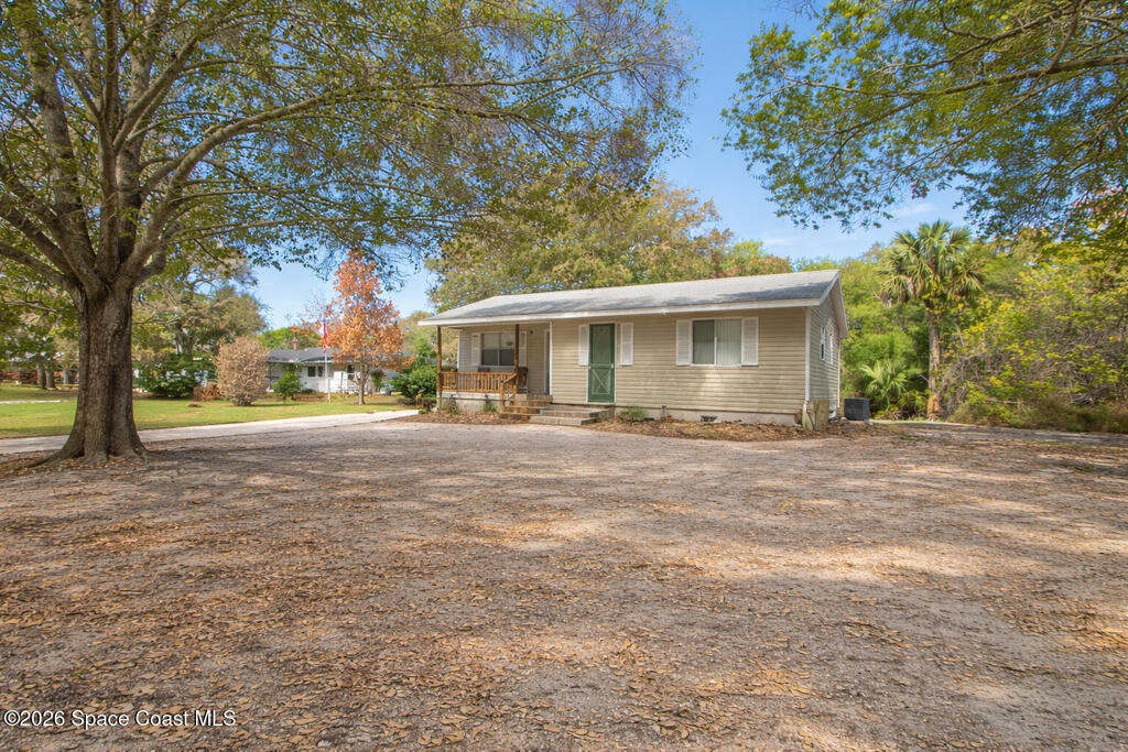 NO HOA! Situated on an oversized corner lot with mature oaks in one of the most desirable areas in the Sebastian Highlands, this 3BR/1BA home is just 10 minutes to the beach. Features include front porch living, separate dining area, and inside laundry. Property needs updates and repairs--roof replaced in 2005 (not permitted) and soft spot in floor. Priced for condition. Cash only.