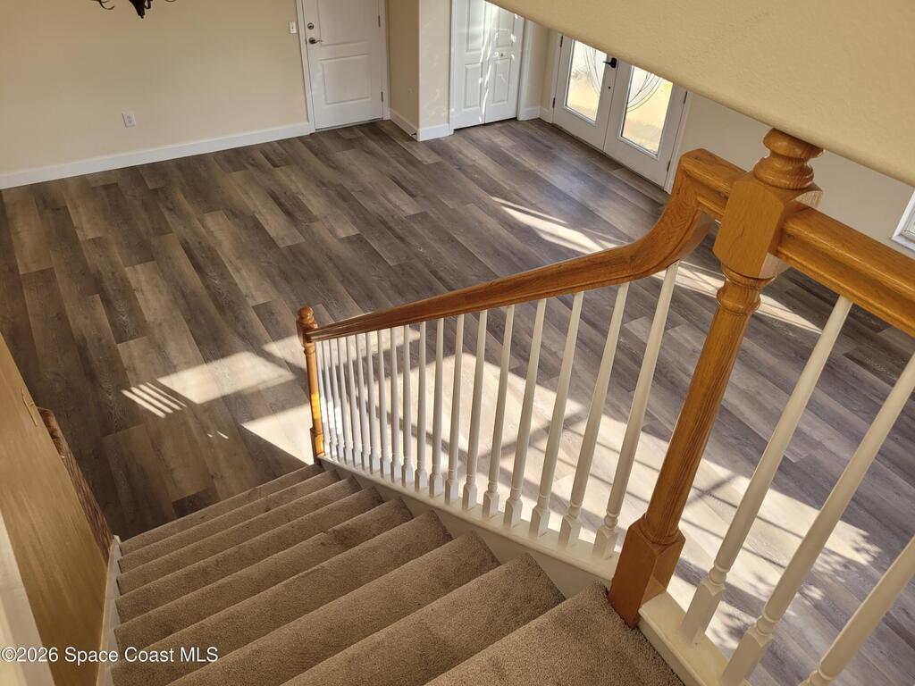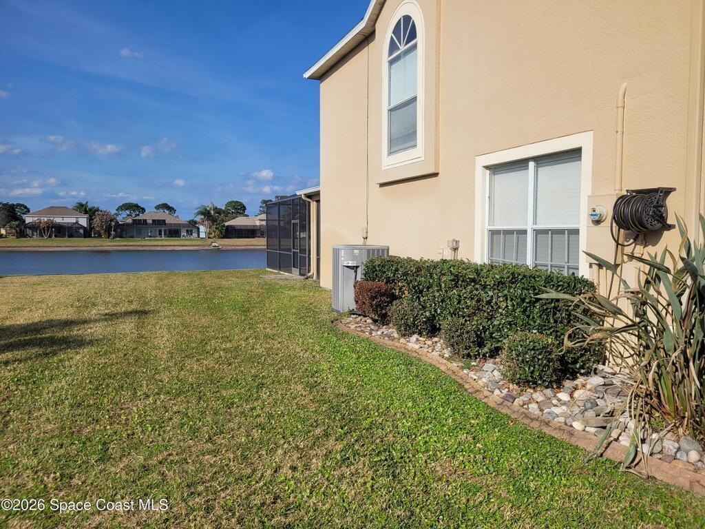 Check out this beautiful 4/3/2 WATERFRONT POOL HOME located in highly sought after Chelsea Park! This home boasts an open floor plan, spacious common areas, and a large kitchen open to the family room which overlooks the pool! There is plenty of cabinet space, a pantry, all stainless steel appliances, and a breakfast bar. The upstairs master has his/hers walk-in closets and a beautifully remodeled master bath. There's also 3 more bedrooms on the top floor. Luxury vinyl floors are throughout the entire home with the exception of a carpeted staircase. Sliding doors from the living room and kitchen reveal an OVERSIZED screened-in deck with an in-ground heated pool, hot tub, and beautiful lake views. Fantastic location - minutes from Viera shops, restaurants, I-95, The Avenues, theaters, parks and all the beaches. Rent includes pool service and lawn/landscaping! This a pet-friendly neighborhood with a beautiful park - come and join this terrific community!