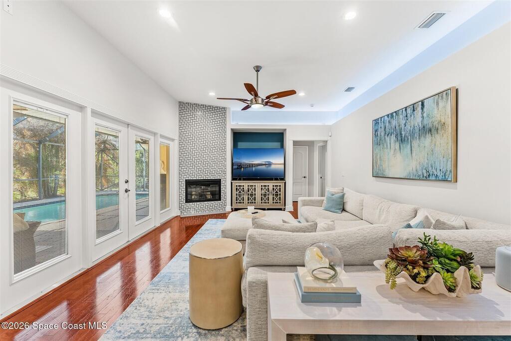 Beautifully updated 4 bedroom, 3 bath, plus an office/den, pool home situated on a lot that provides privacy and location. Step inside this open and bright floorplan to discover the many upgrades this home offers, new light fixtures, tile backsplash quartz countertops, sink and faucet in the kitchen, Wainscoting wall in Dining Room, stunning floor to ceiling tiled fireplace in family room, complete renovation of Primary Bathroom and more. This home also has a 3 car garage, one of which will accommodate a boat or RV. Centrally located in Viera with A rated schools, shopping, dining, beaches and Patrick Space Force Base nearby. Roof 2019, HVAC 2020, Refrigerator 2022.