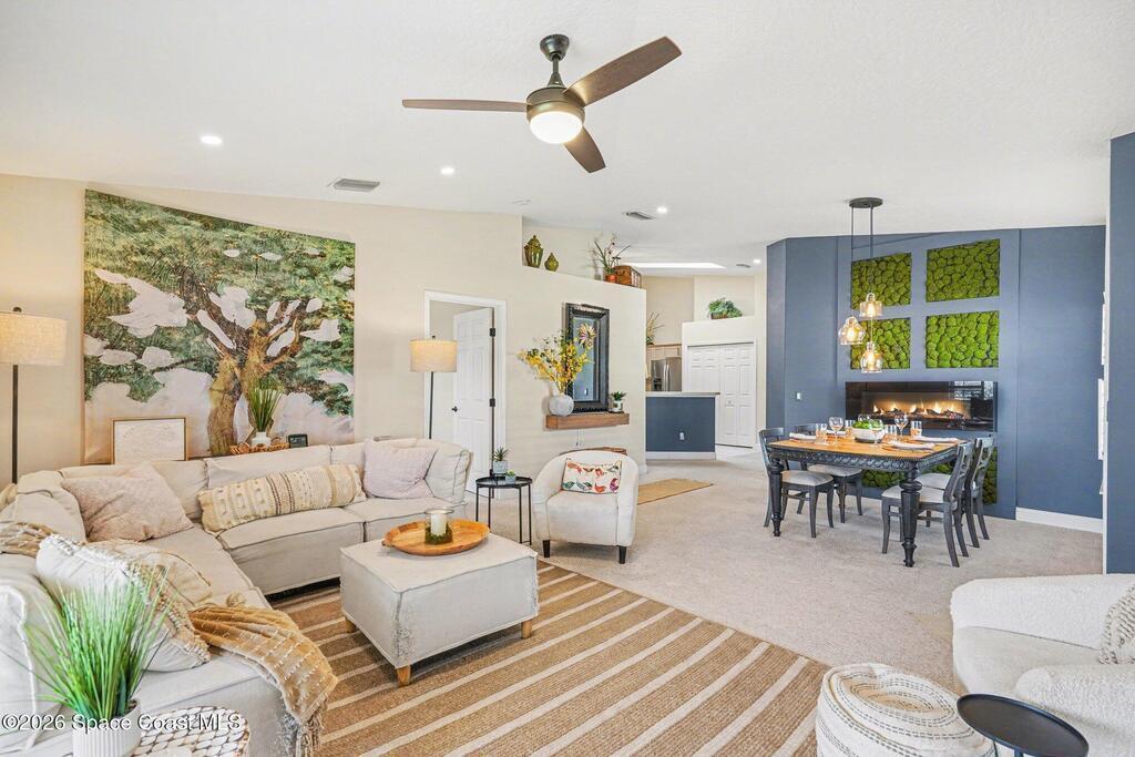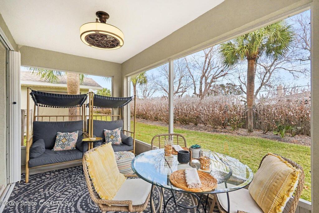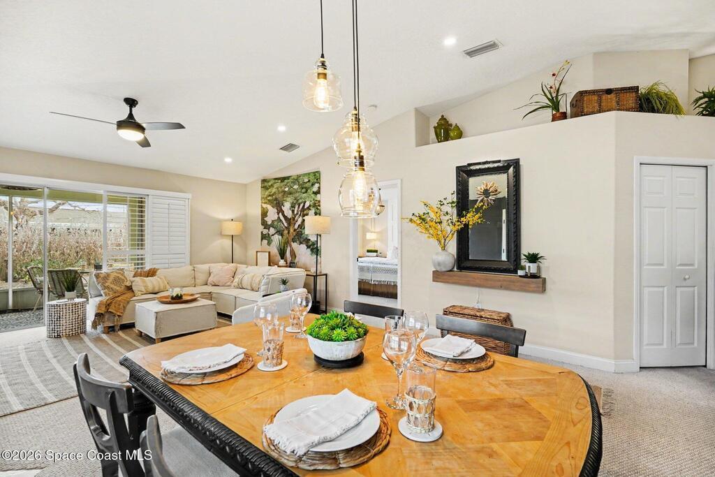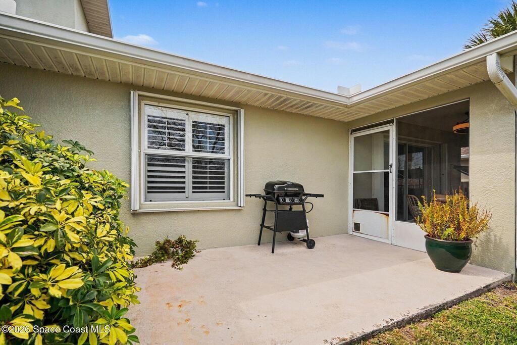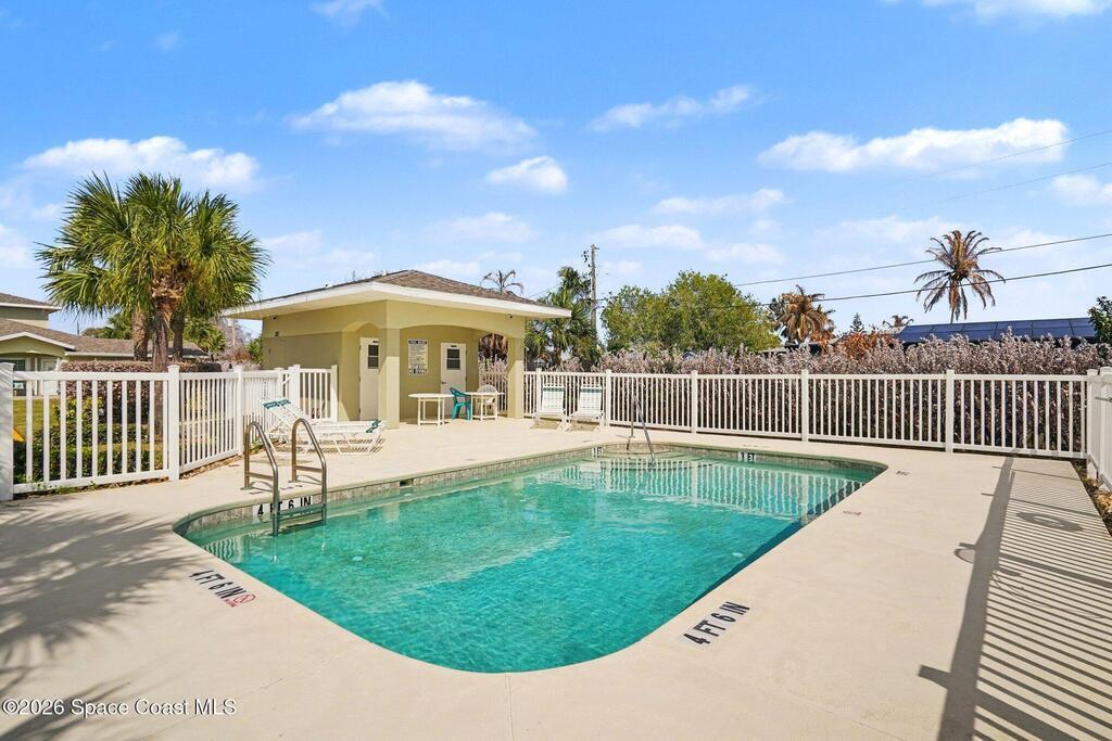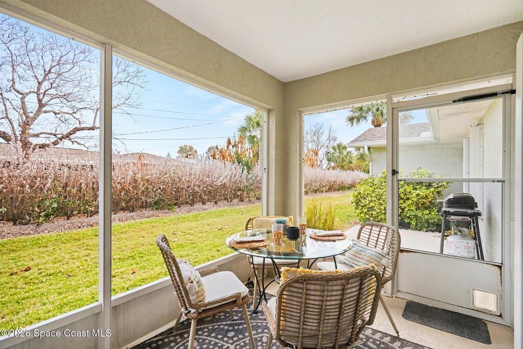 Beautiful one story modern end unit townhome in sought after Canterbury Villas community in Satellite Beach. This lovely villa shows light and bright, many upgraded features . Side entry into spacious great room with direct access to back screen porch and patio ( very private). The primary bedroom with walk in closet and good size bathroom, You will notice Bahama Shutters on all the windows. New Daikin 16.2 SEER2 air conditioner with lifetime transferable warranty and smart thermostat. Freshly painted exterior, newer garage door, newer water heater, Newer roof, Good size kitchen with newer Stainless Appliances, updated LED lighting and updated lighting fixtures,Split bedrooms with the 2nd and 3rd bedrooms on far side of villa giving you privacy for all your family or guests. Quiet peaceful street with community pool steps away. Single story townhome are rare in Satellite Beach, this beauty is ready for new owners. The Beach,restaurants and shopping are all close by. Beach Life !!