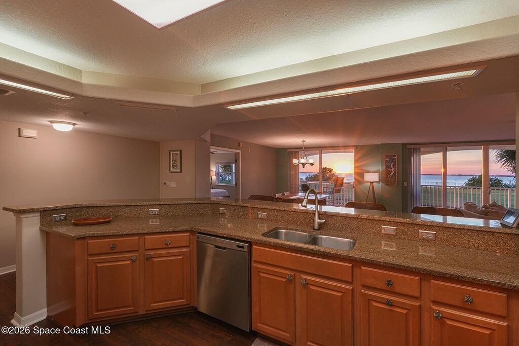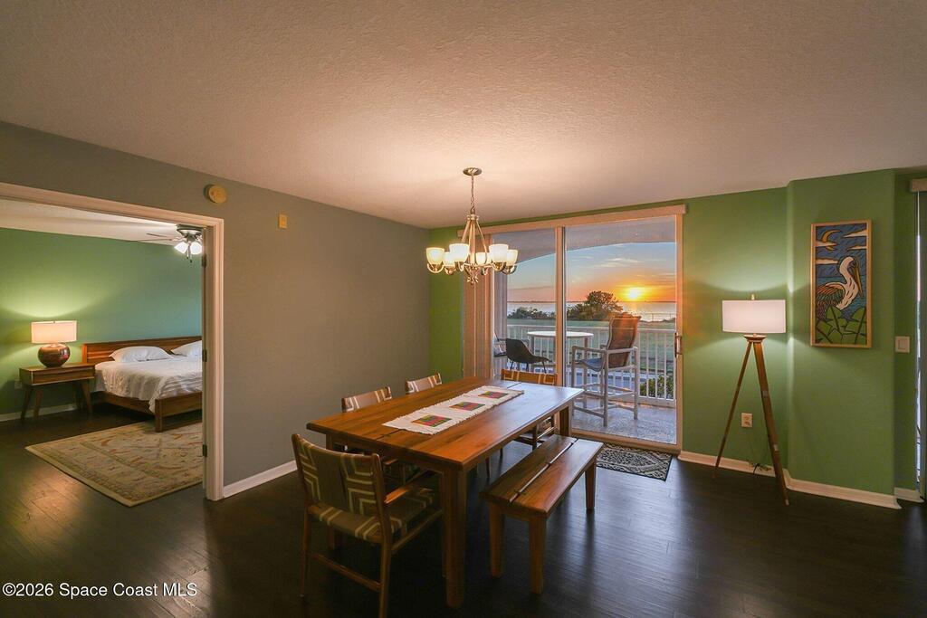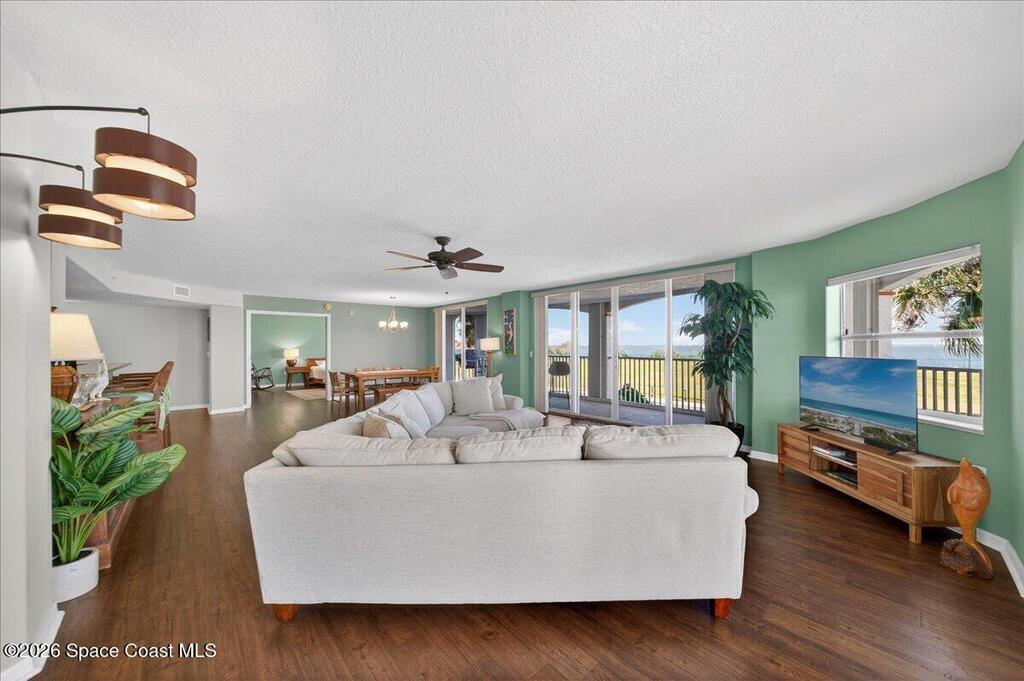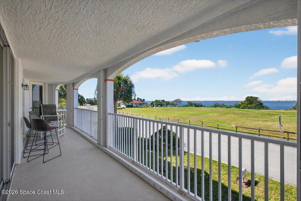 Enjoy resort-style riverfront living in this beautifully maintained 3-bedroom, 2-bath west-facing residence overlooking the Banana River. Expansive wrap-around balconies capture vibrant Florida sunsets and sweeping water views. The split floor plan offers comfort and functionality, featuring elegant vinyl and tile flooring, coastal paint tones, abundant natural light, hurricane shutters, and a dedicated indoor laundry room. Elevator access opens directly to your door for convenient and easy entry. The unit includes a one-car garage under the building. Each building features keyed main-floor entry, a first-floor fitness center and clubhouse, and residents enjoy two community pools with spas for a true waterfront resort experience. The association fee includes cable TV, internet, water, sewer, trash, pest control, and building insurance -- delivering simplified, low-maintenance coastal living.