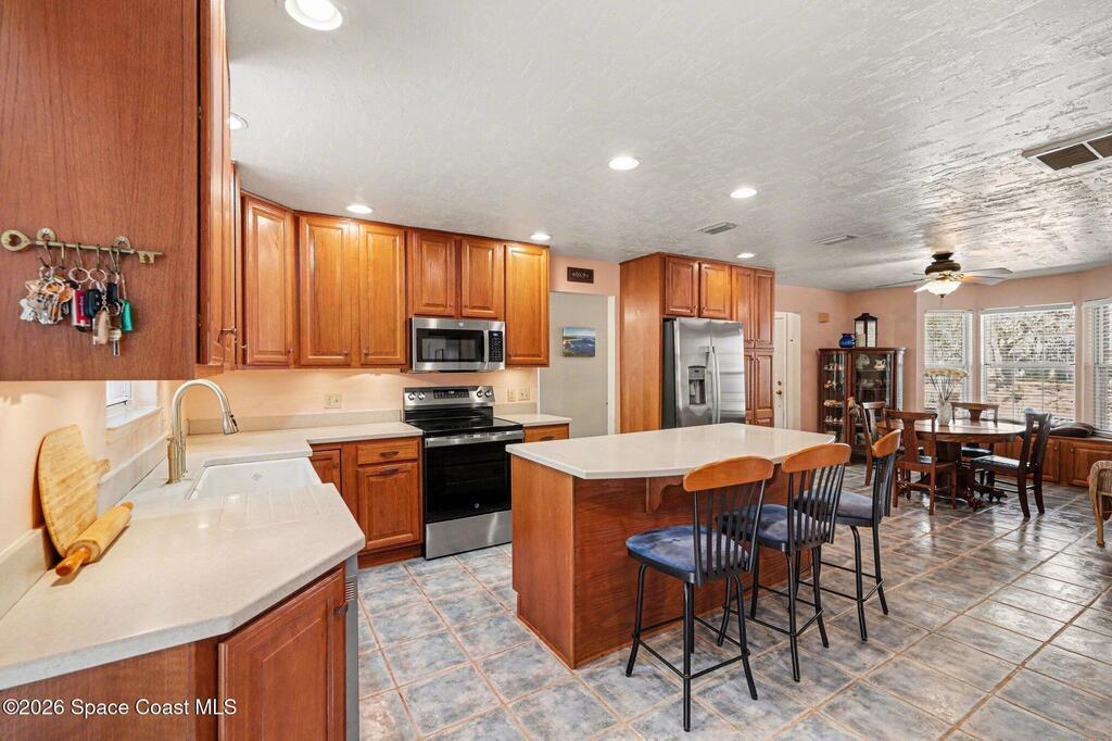 Breakfast Bar , Ceiling Fan(s) , Entrance Foyer , Kitchen Island , Pantry , Split Bedrooms