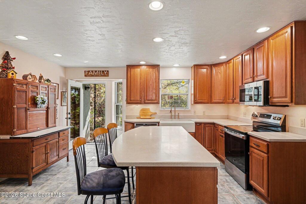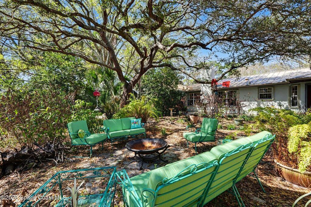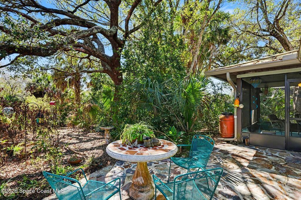 Native Florida Landscape surrounds this beautifully updated 4-bed, 2-bath home in highly sought-after Lockmar Estates. Sitting on 0.4 acres, the majestic oaks and wide variety of native plants and trees create a feeling of nature and privacy, attracting a huge variety of birds and butterflies. The home has been completely updated, with a kitchen featuring solid-wood soft-close cabinets and brand new GE S/S refrigerator, range and microwave. The living room features a woodburning fireplace and a door that leads to the recently re-screened back porch. No carpet in this house. A new metal roof and Trane AC system were installed in 2024, along with all new gutters and exterior paint. Entirely new septic system installed in 2019. Accordion storm shutters for added security and full chain link fence in back. This home features a thoughtfully designed native Florida landscape, offering lower water usage, reduced maintenance, and year-round natural beauty.