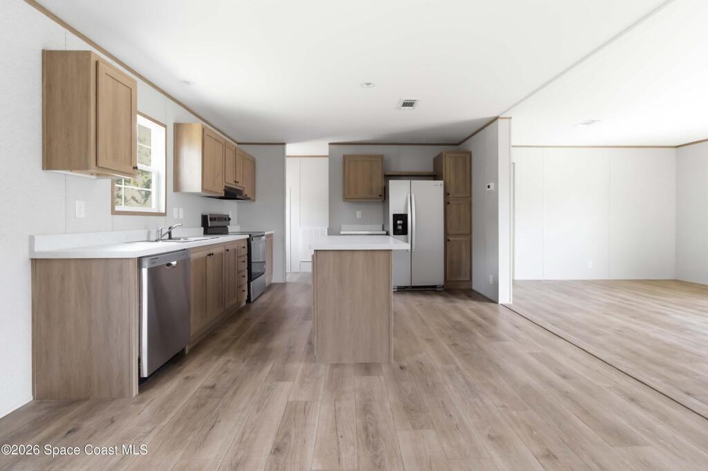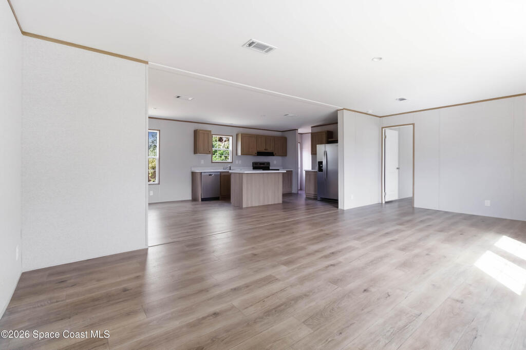 Looking for a BRAND NEW HOUSE?...here it is! Brand new in 2026. Brand new AC, septic system, roof, water heater, double-pane windows, etc.. everything is BRAND NEW! Spacious house that is almost 1,500 sqft, with 3 bedrooms, 2 bathrooms, and dining area. Large kitchen includes UPGRADED STAINLESS STEEL WHIRLPOOL APPLIANCES, an ISLAND with overhang for casual dining, QUARTZ-LOOK countertops, and LOTS OF CABINETS. The SHAKER-STYLE CABINETS have warm tones to match modern kitchen trends. Tons of NATURAL LIGHT and WOOD-LOOK FLOORING throughout. Each Bedroom has a large WALK-IN CLOSET. INDOOR LAUNDRY ROOM. Very PRIVATE back yard. No HOA and on CITY WATER. Great CENTRAL LOCATION and only minutes to the BEACH, 35 mins to Orlando Int'l Airport, and 45 mins to Orlando.