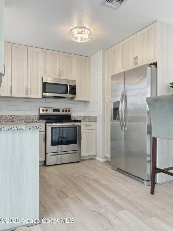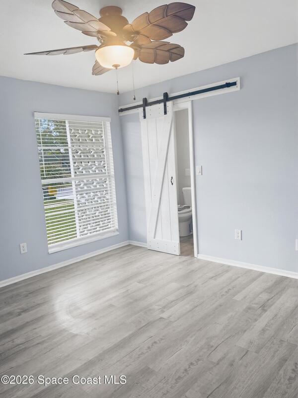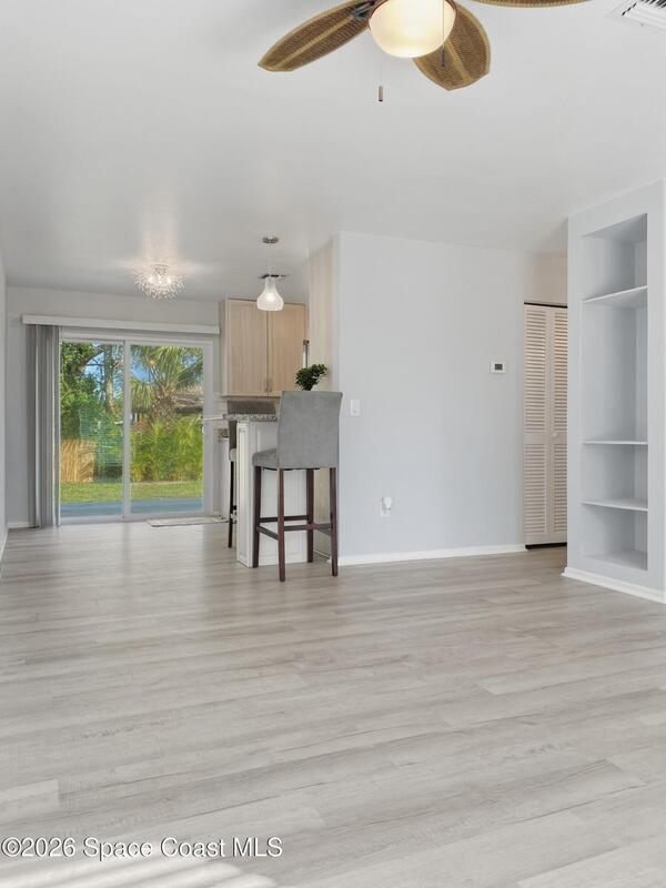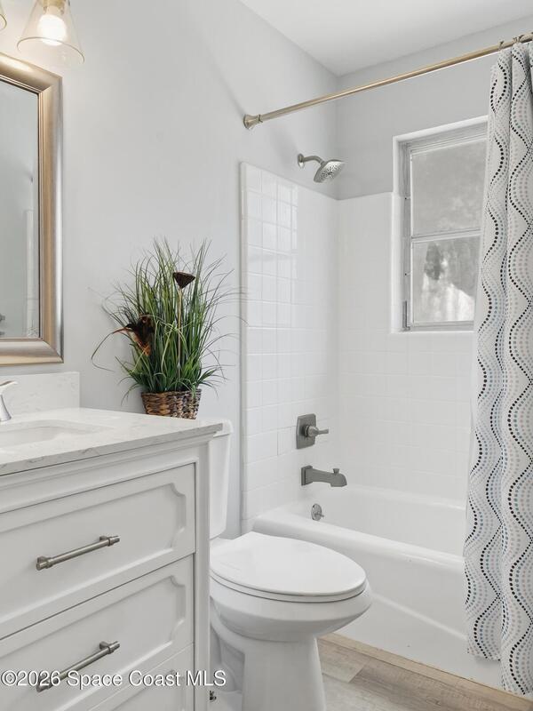 Charming 2 bedroom, 2 bathroom home with extensive 2023 upgrades and modern interior improvements, located near water access and nature preserves.Major updates completed in 2023 include a new roof, new HVAC system, new water heater, updated electrical and plumbing, providing durability, efficiency, and long-term reliability. These improvements address key structural and mechanical components of the home.The interior features a fully updated kitchen with contemporary finishes, along with renovated primary and guest bathrooms. The split-bedroom layout enhances privacy and functional living space.Fully functional irrigation system for the front and backyard on a timer on a well. And fully fenced backyard is lined with privacy hedges, creating a private outdoor setting with room for pets, gardening, or outdoor enjoyment. Located minutes from Turkey Creek Sanctuary with hiking and kayaking access, and blocks from a public boat launch