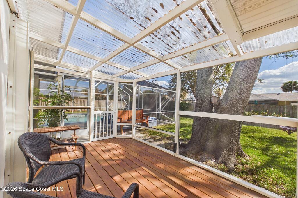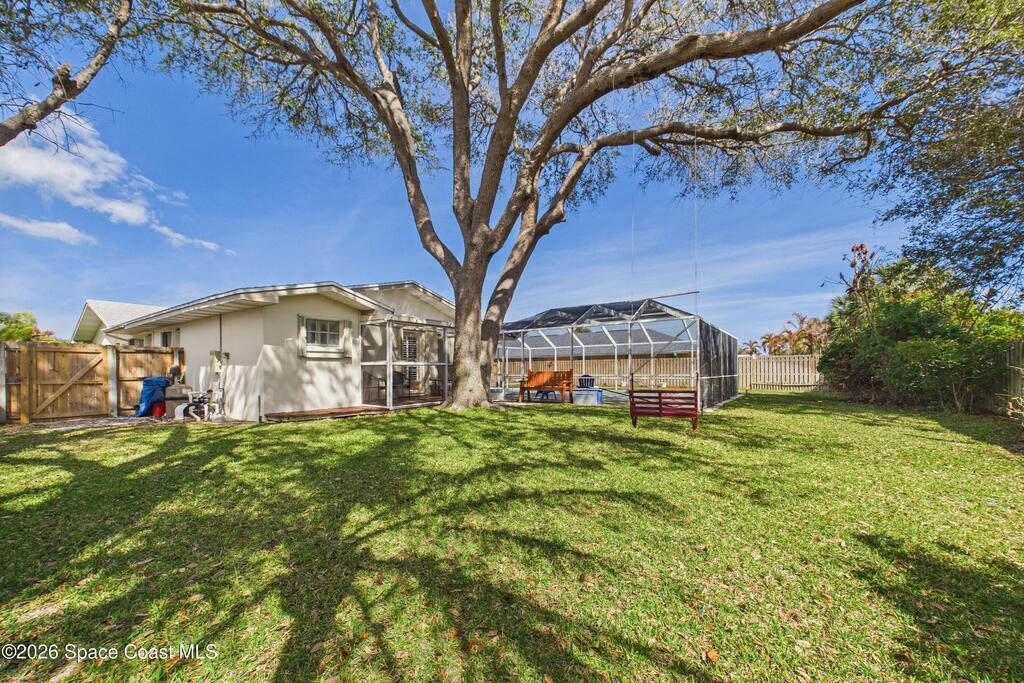 Beautifully Maintained 2 Bedroom 2 Bath 2 Car Garage Home with Large Rectangle Pool (Great for Lap Swimmers) - Large Fenced Back Yard with Huge Shade Tree. Very Private Serene All Screened Pool includes a Large Area of Wood Trussed Covered Roof Patio for Dining, etc. Home had Roof Replacement in 2016, A/C is 3 years New, Hot Water Heater 2 years Electric Panel Newer, All Windows have Easy Pull Close Hurricane Shutters, Kitchen has Double Ovens and overlooks pool - opens one side to Formal Dining Room connects to Living Room - The Other side of Kitchen Flows Into Large Family Room with Built In Shelving & 1 Impact Wall Wood Paneled. Both Bathrooms Recently Beautifully Updated.Primary Bedroom has WoodLook LVP Flooring. Large Primary Closet leads to the Bath with Door to Private Outdoor Sitting area. Viewing of this home is a MUST -Conveniently Located within Blocks to Ocean on the East and IntraCoastal Waterways to the West. Very Short Distance to Publix and Restaurants and Schools