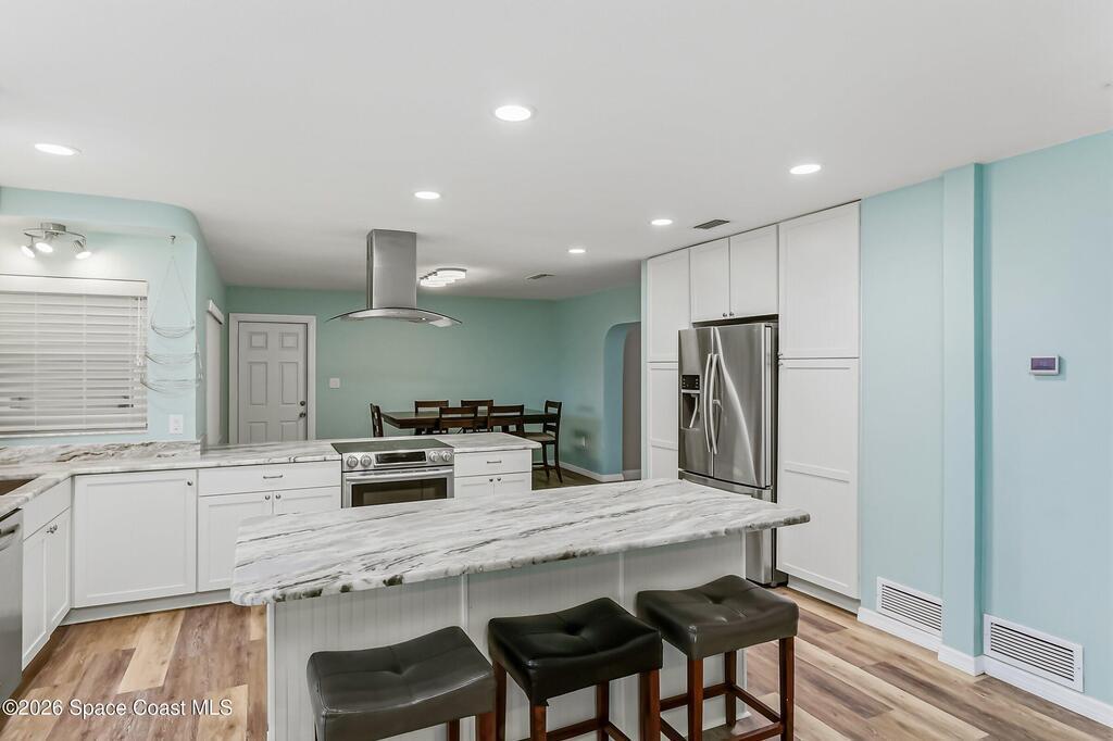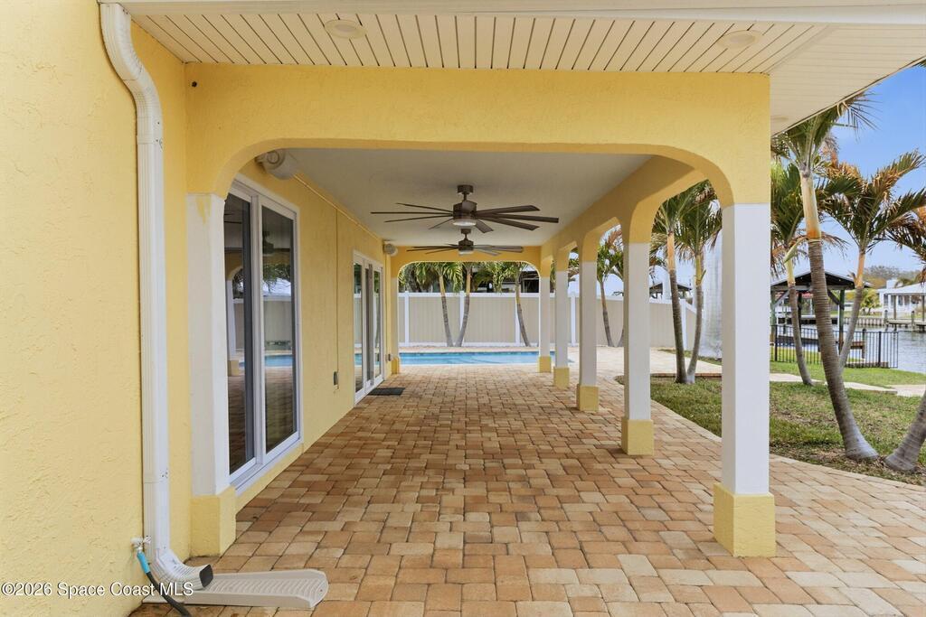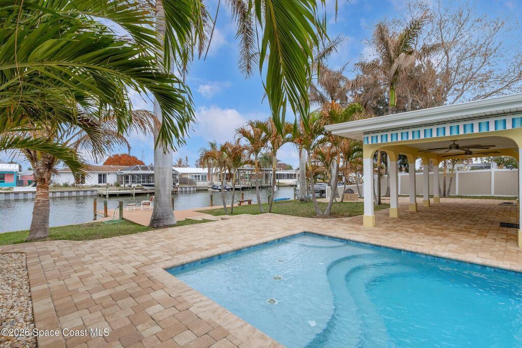 This Waterfront Coastal delivers the ultimate Cocoa Beach lifestyle -- deep-water access, designer upgrades, and effortless indoor-outdoor living just six homes from open river. This beautifully updated 3-bedroom, 3-bath residence features impact windows and doors, a circular drive, and a thoughtful split layout designed for both relaxation and entertaining. The redesigned kitchen showcases a large island, custom soft-close cabinetry with pull-outs, stainless appliances, and a walk-in pantry, flowing seamlessly into spacious living areas and a riverside family room with smart shade system. The primary suite offers water views, custom accent wall with built-ins, and an updated spa-style bath. Major improvements include newer HVAC and ductwork (2021), roof systems (2019), luxury wood-look flooring, LED lighting, and modernized mechanicals. Outdoors, enjoy a resort-style saltwater pool with Pentair automation, outdoor full bath, covered lanai with audio, paver patios, firepit, and lush..