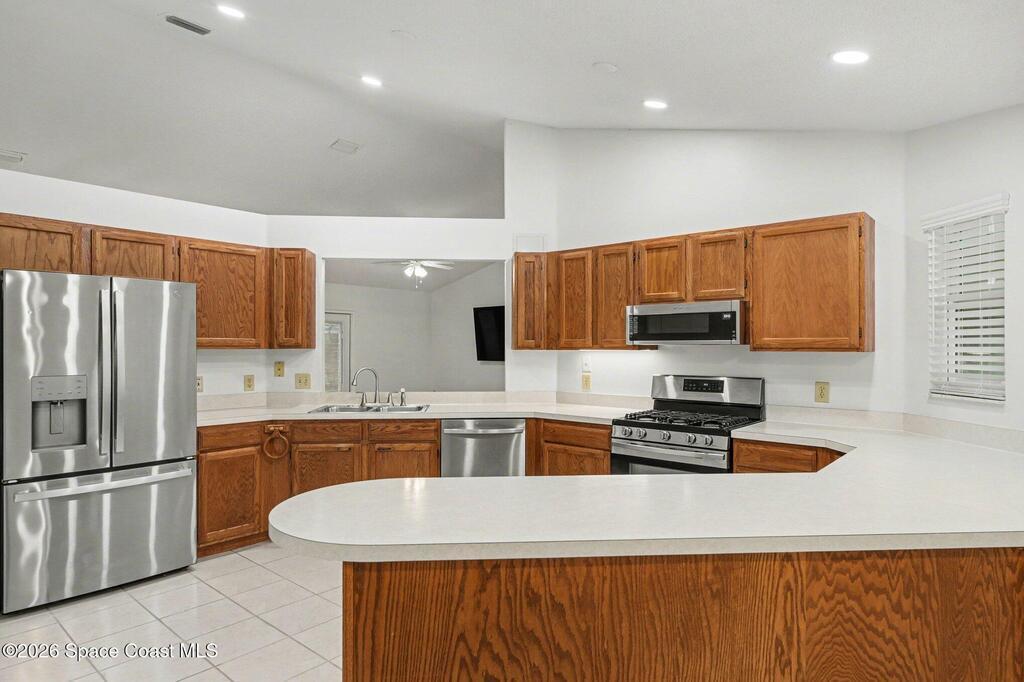 Welcome to this beautifully maintained home in the sought-after Greenbriar Village community of Melbourne. This spacious open floor plan features cathedral ceilings, a desirable split-bedroom layout, laminate and tile flooring throughout. The kitchen offers new stainless steel appliances, generous counter space, and ample storage. The stove and dryer are both powered by natural gas. The primary suite includes a large walk-in closet and a spacious vanity area. Natural light fills the living room and flows seamlessly to the screened-in lanai, where a dedicated natural gas hookup makes outdoor grilling simple and convenient. The two-car garage offers more than just parking -- a portion has been enclosed and air-conditioned, creating the perfect workshop, craft room, or hobby space. Major upgrades completed in 2020 include a new roof, impact windows, fresh interior paint, new gutters and downspouts, gutter guards, and a transferable termite bond. Located close to everything in Melbourne.