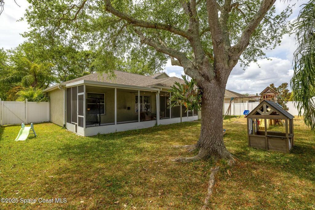 Motivated Sellers! Fall in love with this 5 bedroom, 3-bath home offering comfort and timeless charm! Prime Rockledge location in the sought-after Plantation Point community. The open, split floor plan features a spacious living room, formal dining, private sitting area, kitchen with breakfast bar, pantry, and stainless steel appliances. The primary suite (downstairs) is a true retreat with fresh paint, a walk-in closet, and a relaxing garden tub. A split floor plan provides privacy with three additional bedrooms, a generously sized guest bath and indoor laundry. Upstairs features an expansive bonus suite and a full bath, making it ideal for multi-generational living, a private guest retreat, or a home office.Step outside to enjoy Florida's sunshine year-round on the large screened porch and fully fenced backyard. Recent upgrades bring peace of mind, including a 2019 roof, upgraded AC, and hurricane shutters.