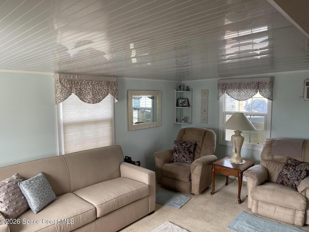 Lovely refreshed 2BR/2Bath in the 55+ Holiday Park neighborhood. This well kept home offers Stainless Steel appliances (brand new microwave not show in the photos), updated white cabinets, wood look flooring and step-in showers. HVAC replaced on 11/25, and the roof was resealed roughly two years ago. Many furnishings can remain for an easy transition. Utility room includes added storage plus a washer and dryer. Great location close to 1-95, shopping, restaurants and about 20 minutes to the beach. This is a gated adult community with 2 pools, lots of activities with NO LOT RENT. Agents should familiarize themselves with H.P. deed restrictions available at holidayparkfl.com