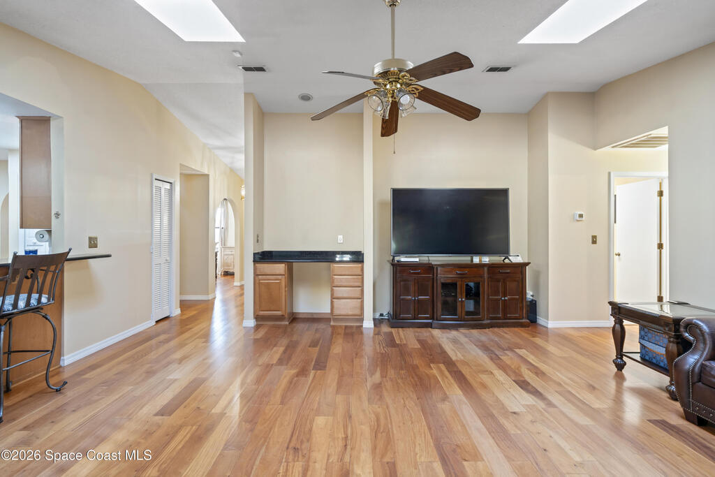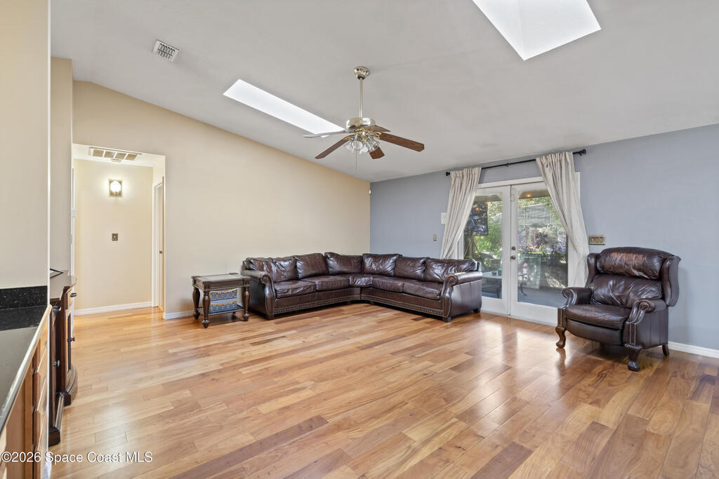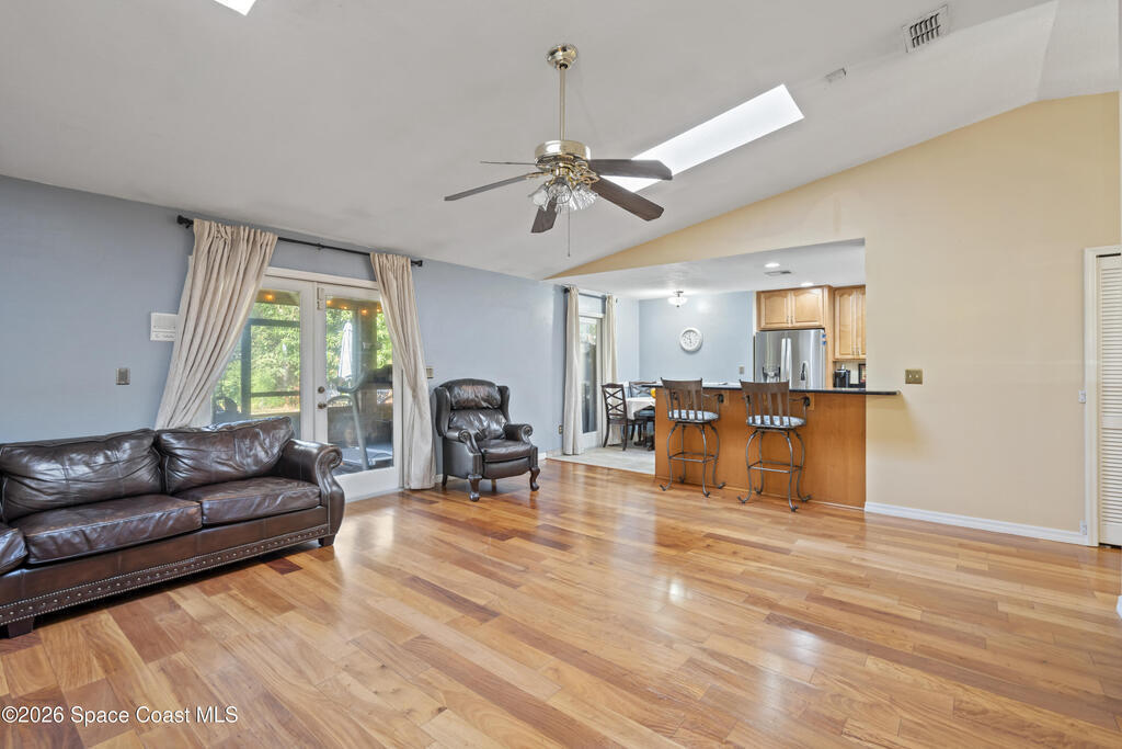 Well-maintained,2,000+ square feet of living space - 4 bedrooms, 2bathrooms. Located in Lockmar Estates, home to the top-rated Lockmar Elementary andPineapple Cove Classical School. Upgraded kitchen with breakfast nook, spacious living room with a serving bar and desk/media area. Dual skylights and engineered wood flooring extend through the foyer, formal dining, and large first bedroom with dual closets. The master bedroom is oversized with a dressing area, walk-in closet, and updated bathroom. Two additional bedrooms and an updated bathroom complete the interior. Outside is a 15 x 30 screened porch and an adjacent 15 X 30 open patio. The front lawn is nicely landscaped with neatly edged flower beds and a variety of mature plants and trees.Thebackyard is a true tropical oasis, with two expansive oak trees, a huge mango tree, a mulberrybush, a sea grape tree and more than 15 varieties of additional flowering trees and plants