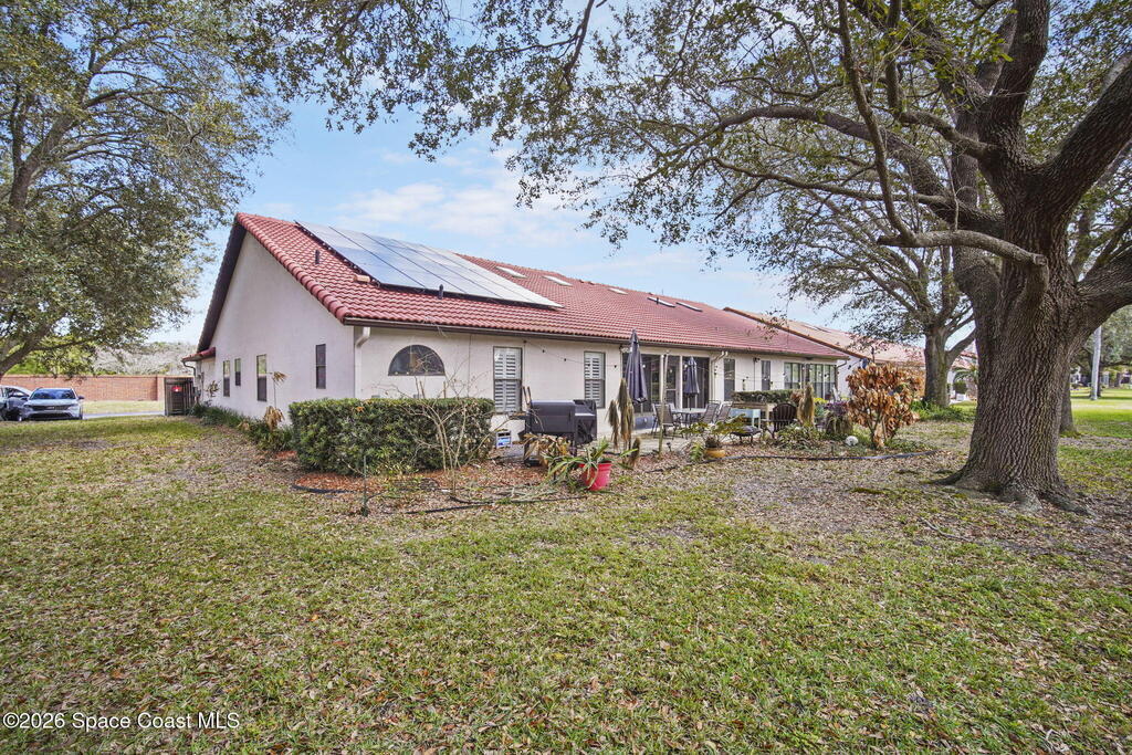 Welcome to life in Suntree--where golf carts are a perfectly acceptable mode of transportation and everything you need is right around the corner. Top-rated schools, championship golf, beautiful parks, great restaurants, and the beach are all just minutes from your driveway.Inside, this thoughtfully updated 3-bedroom home offers an airy, open layout filled with natural light. The flexible bonus room opens straight to a peaceful lakeside patio, giving you endless options--home office, guest retreat, playroom, second living area... you decide.This home isn't just beautiful--it's upgraded where it counts: Granite countertops throughout, brand-new appliance package, fully remodeled bathrooms, new 4.5-ton HVAC system, New gas water heater, whole-home water filtration system, $55,000 green roof solar panel system powering the entire home for just $70/month.Comfort, efficiency, location, and a financing advantage that's hard to find--this one checks all the boxes.