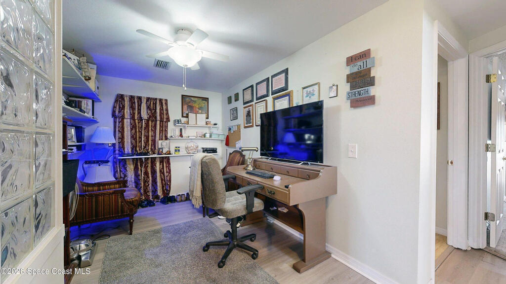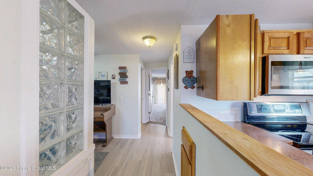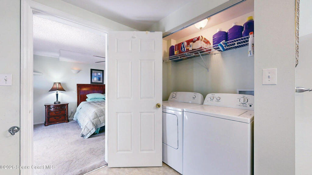 Easy Florida Living!! PALM BAY COLONY 55+ Community! HOA is VOLUNTARY and paid until Jan 2027 by Seller -- enjoy the pool and amenities! Updated 2BE, 2BA double wide home. Updated kitchen with stainless steel appliances, range with double oven and maple cabinets. Updated master and guest bath. Two French doors off screened front porch and leaded glass side door off carport. Screened back porch off master bedroom. Fenced backyard. Indoor laundry. Carport with oversized enclosed storage. New breakers in main panel. A/C 2021 with 10-year parts warranty. Water heater 2025. Updated plumbing. Workshop. Clubhouse, pickleball, pool, shuffleboard and tennis courts. Protected security by ARLO. Located in Palm Bay in beautiful Brevard County -- minutes to the beaches of Cocoa Beach and the Space Coast. Enjoy nearby waterfront dining and watch rocket launches from Kennedy Space Center light up the sky! 🌴🚀🌊 Best part? This lot is owned!!! So no monthly rent!