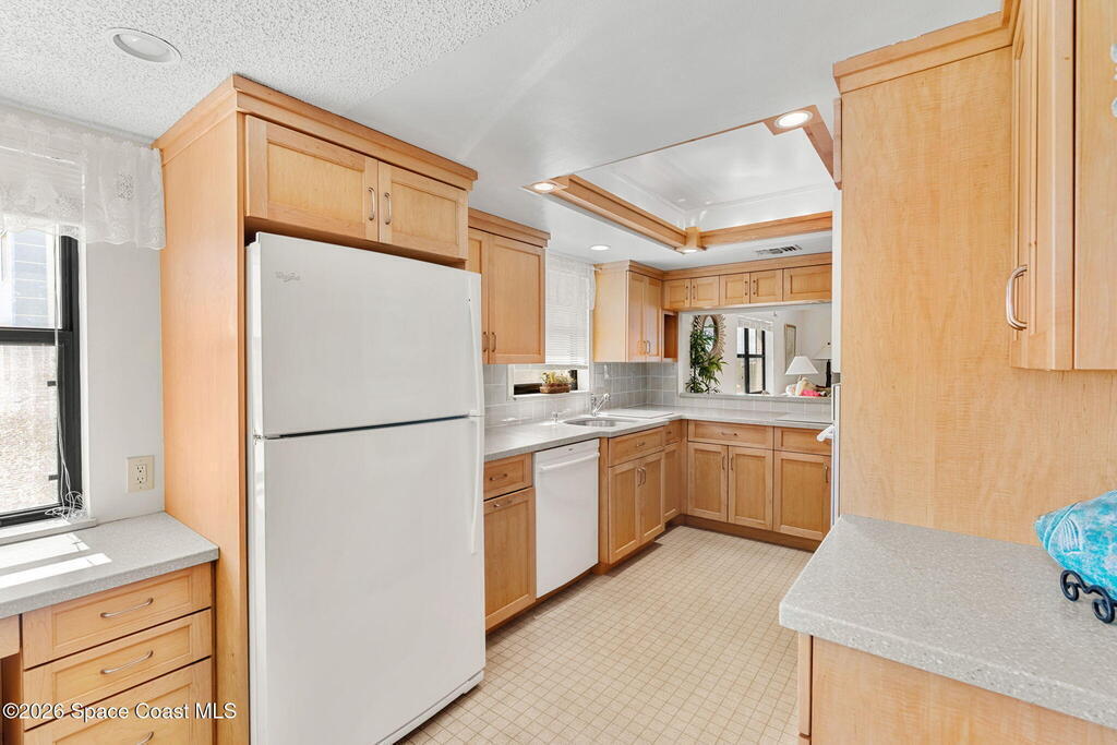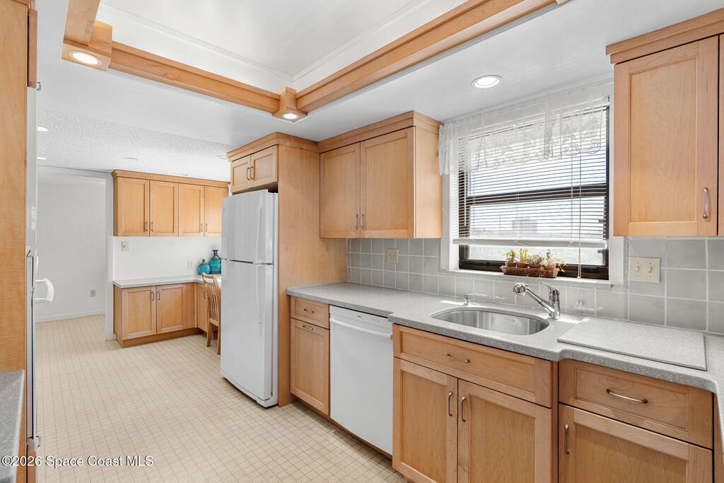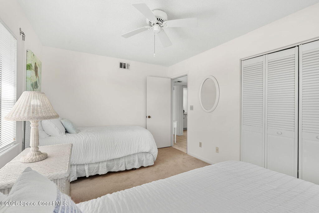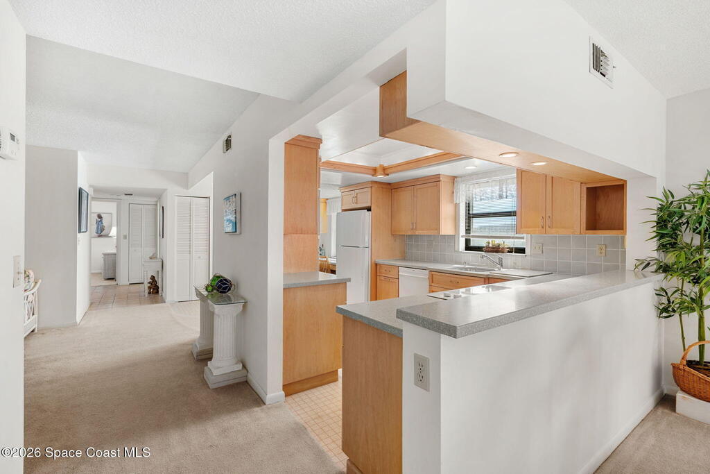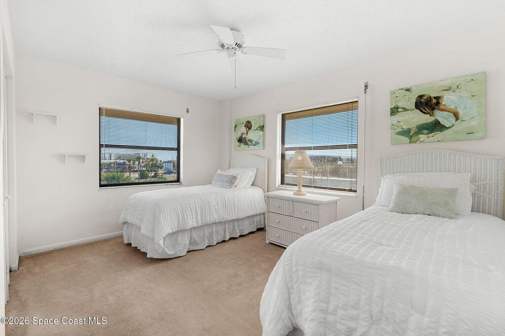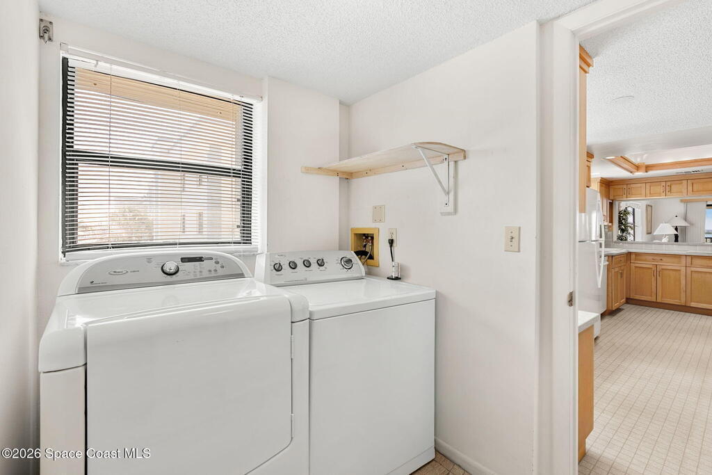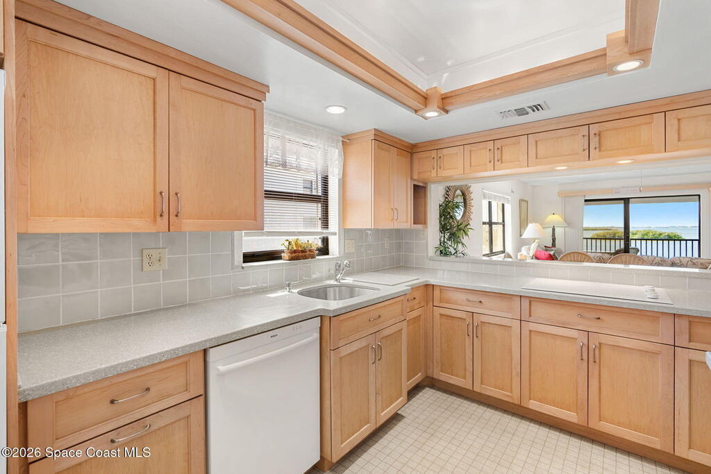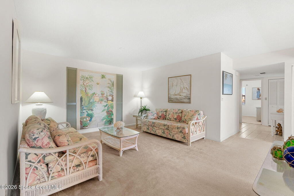 Available now, a new listing in Cocoa Beach! This 4th-floor corner unit in Fountain Cove is an exceptional 3-bedroom, 2-bath residence offering fantastic views of the Banana River. The home has been lovingly maintained and features custom wood cabinetry and Corian countertops throughout the kitchen and bathrooms, complemented by matching custom built-ins in the living room. Each bedroom is finished with plush carpeting for added comfort. The primary suite includes dual closets leading into a well-appointed en-suite bath, and both the suite and the private balcony offer sweeping waterfront views. The balcony has recently undergone a full restoration and comes equipped with shutters for peace of mind. Residents of Fountain Cove enjoy an inviting waterfront lifestyle with access to a heated pool, clubhouse, tennis/ pickle board court, and a car wash station. This unit also includes a private one-car garage along with ample open parking for guest!