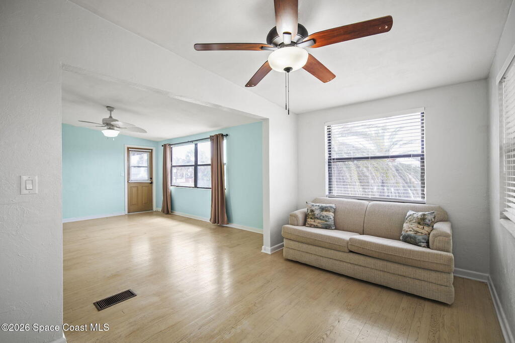 This income-producing duplex presents a compelling investment opportunity, strategically zoned Commercial (C) and primed for redevelopment, repositioning, or long-term hold. Situated on approximately 0.23 acres with 2,400 square feet, the property features minimal brush, mature trees, and a two-story structure positioned to capture picturesque sunrise views, rocket launches, and glimpses of the Atlantic Ocean from the second floor.The current configuration includes a one-bedroom, one-bath residence on the first floor and a two-bedroom, one-bath residence on the second floor, offering immediate rental potential or flexibility for future use.While the property would benefit from light renovation and cosmetic updates, it represents a strong value-add opportunity with the potential to create equity and optimize cash flow.