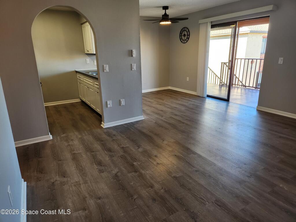 This end unit is a must see with all of its quality upgrades during a remodel only 2 years ago. Updated electrical panel, luxury vinyl plank through the entire home, solid wood kitchen cabinets, stainless steel appliances, and all new plumbing. Bathroom has a walk-in shower made of a higher quality acrylic, one piece toilet, new vanity, plumbing, and all fixtures are Moen. Premium paint from Richards was used to paint every inch of this home. Windows have new screens, blinds, and curtains to help make this condo completely turnkey. Sliding glass door leads to large shared balcony. San Juan Village complex had the roofs redone about 2 years ago, has a sparkling lighted pool, 4 laundry rooms on site, and a conference room that can be utilized by residents for meetings or gatherings. Owners were snowbirds so this condo has only been lived in for a total of about 6 months after the remodel. HOA includes everything but electric and only has a one month rental restriction.