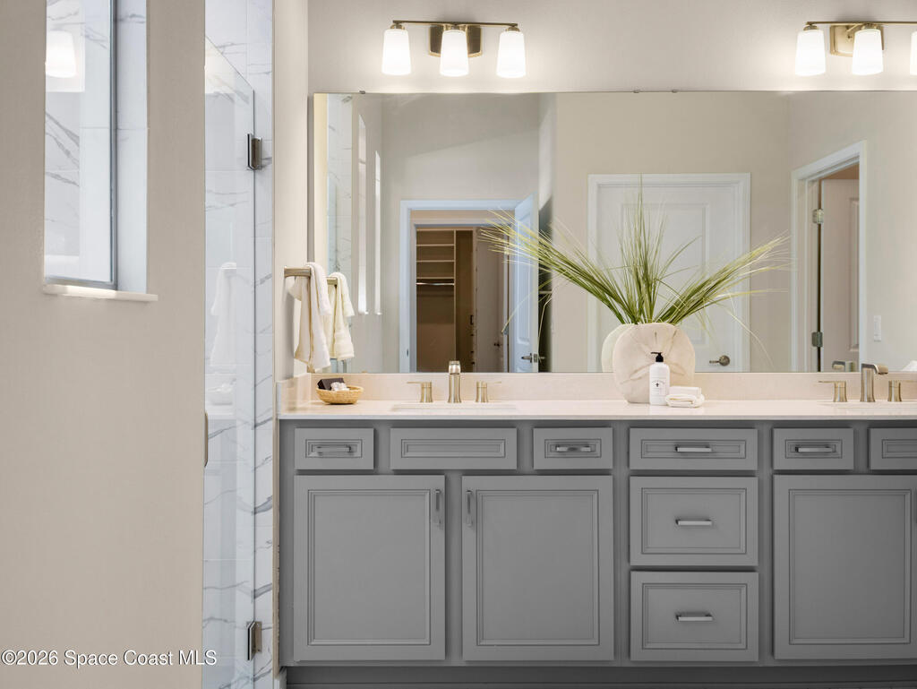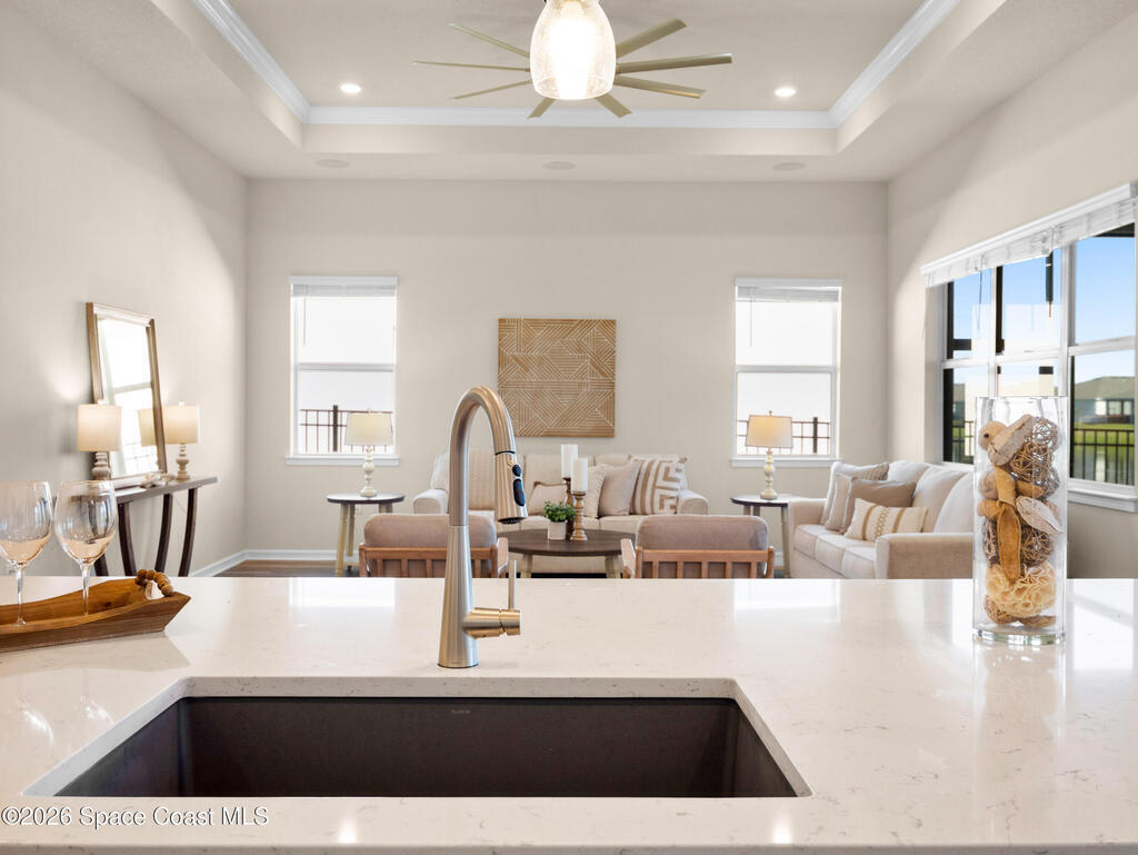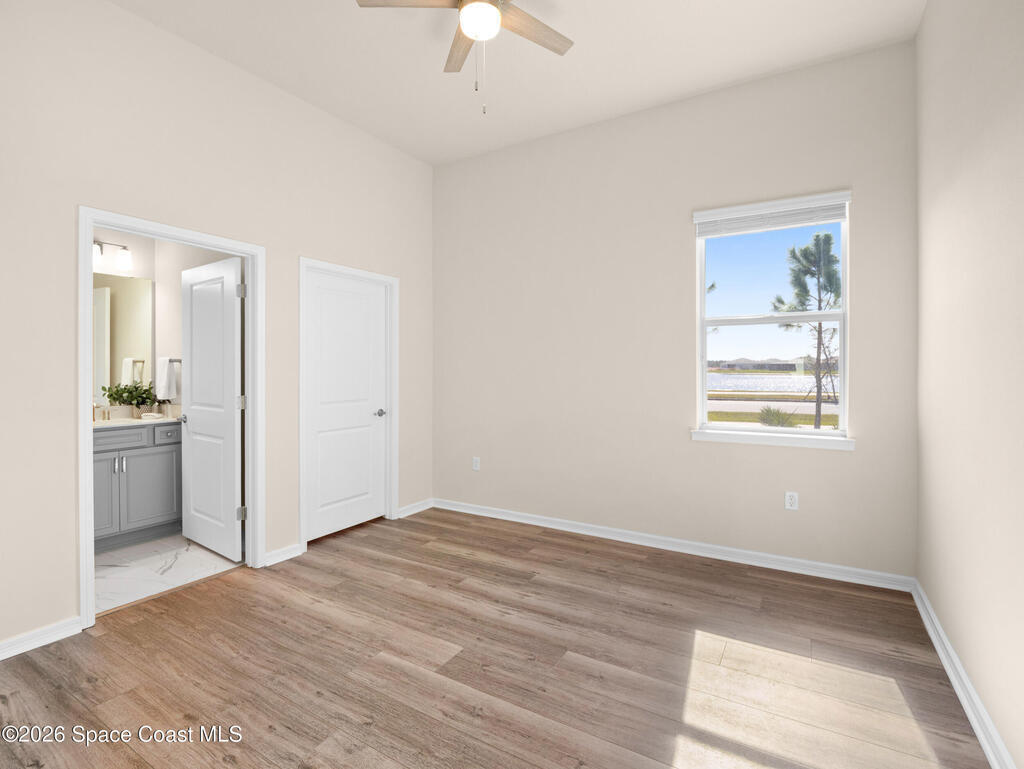 Trade snow shovels for sunshine in this stunning lakefront home in the gated Del Webb at Viera 55+ community--why wait to build when you can move now? Set on a premium corner lot w/ peaceful water views, this move-in-ready residence features an open layout w/ high ceilings & luxury vinyl plank flooring throughout. 3 full bedrooms + a flex space/office- the floor plan is immaculate! The gourmet kitchen offers quartz countertops, 5-burner gas cooktop, double ovens, upgraded cabinetry & a custom walk-in pantry--perfect for entertaining & everyday living. 3 of 4 bedrooms include private en-suite baths for comfort & privacy. Relax on the screened lanai overlooking the lake & fenced yard while enjoying Florida evenings--plus rare views of Cape Canaveral rocket launches from home. Custom closets, upgraded lighting & fans & an extended 3-car garage w/ epoxy floors complete this Florida dream home.