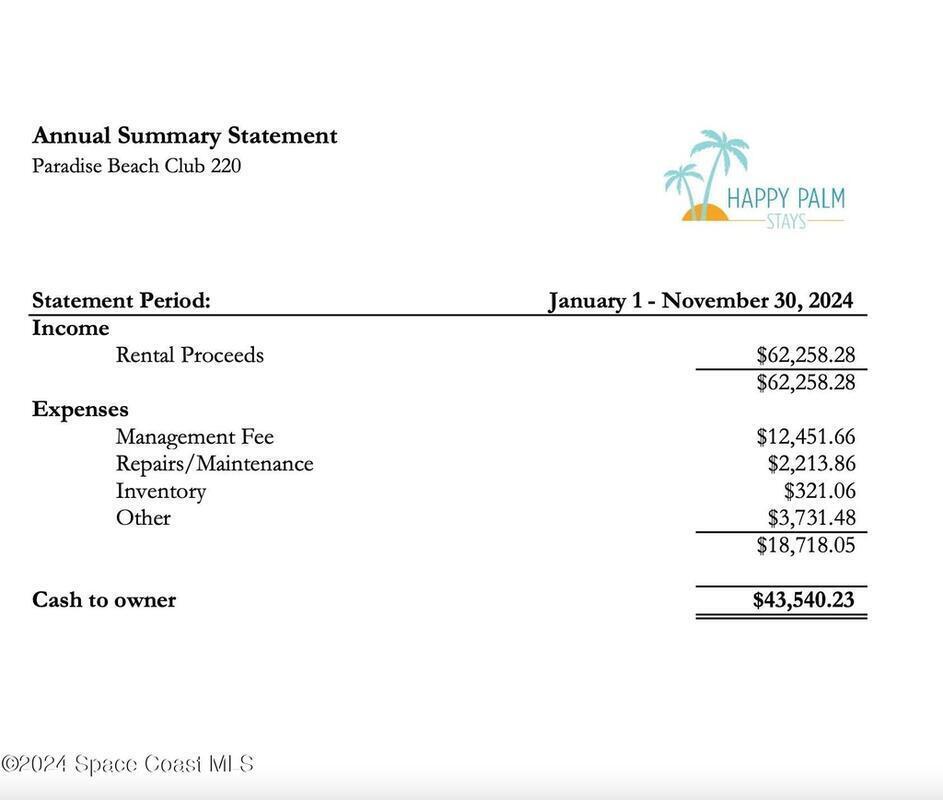 RARE Turnkey Direct Oceanfront Investment Opportunity with Proven Success! Located in the heart of Satellite Beach, this fully booked, fully managed oceanfront condo is a turnkey investment opportunity that's ready for its new owner. With all furnishings and accessories included, along with the transfer of future bookings and the current top-tier management company, this property is primed for immediate income. This beautiful condo features a spacious kitchen with ocean views, modern bathrooms, impact windows and doors, and premium appliances. Resort-style amenities include a heated pool, bocce ball, shuffleboard, BBQ area, workout room, and private beach access. Perfect for investors, snowbirds, or vacationers, this property offers both a beach retreat and a reliable income stream. Don't miss out on this rare opportunity!