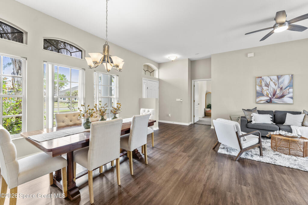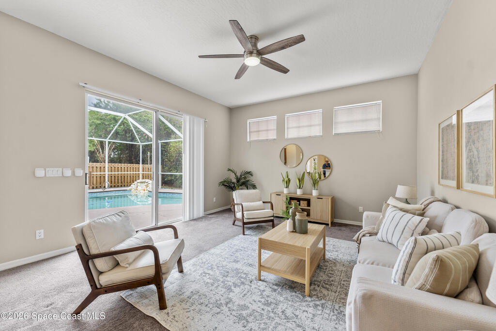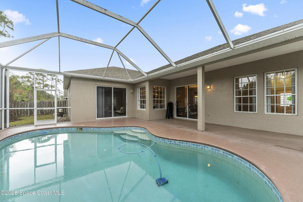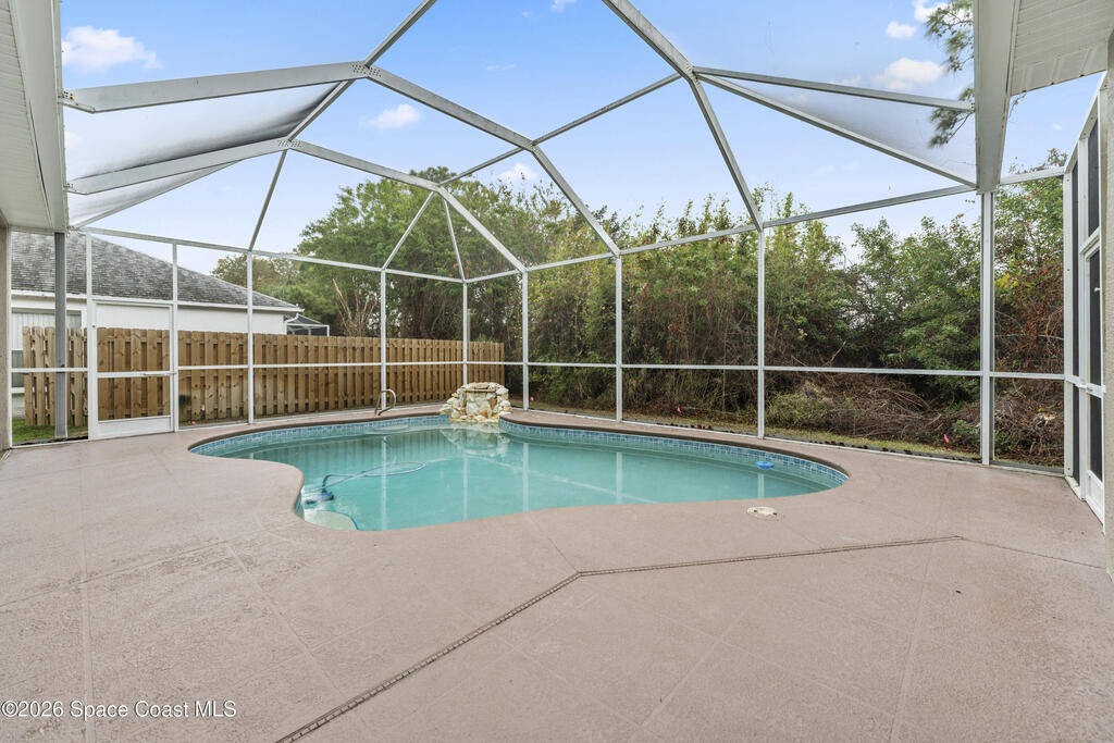 Enjoy the best of Suntree living in this beautifully maintained 3 BR/2 BA pool home tucked away on a quiet cul-de-sac and minutes from everything.Offering over 2,000 square feet of living space, this home features 10' ceilings, abundant natural light, and elegant architectural details including arched walkways and built-ins. The spacious floor plan includes an oversized living area, eat-in kitchen with island, and breakfast nook, creating the perfect flow for everyday living and entertaining. Enjoy Florida living year-round in the screened-in pool and patio with waterfall feature, ideal for relaxing or hosting guests. Major updates include a new roof (2021), complete HVAC replacement (2022), and pool pump motor (2025) for added peace of mind. Centrally located near shopping, dining, golf, parks, top-rated schools, I-95, the beaches, and Patrick Space Force Base.
