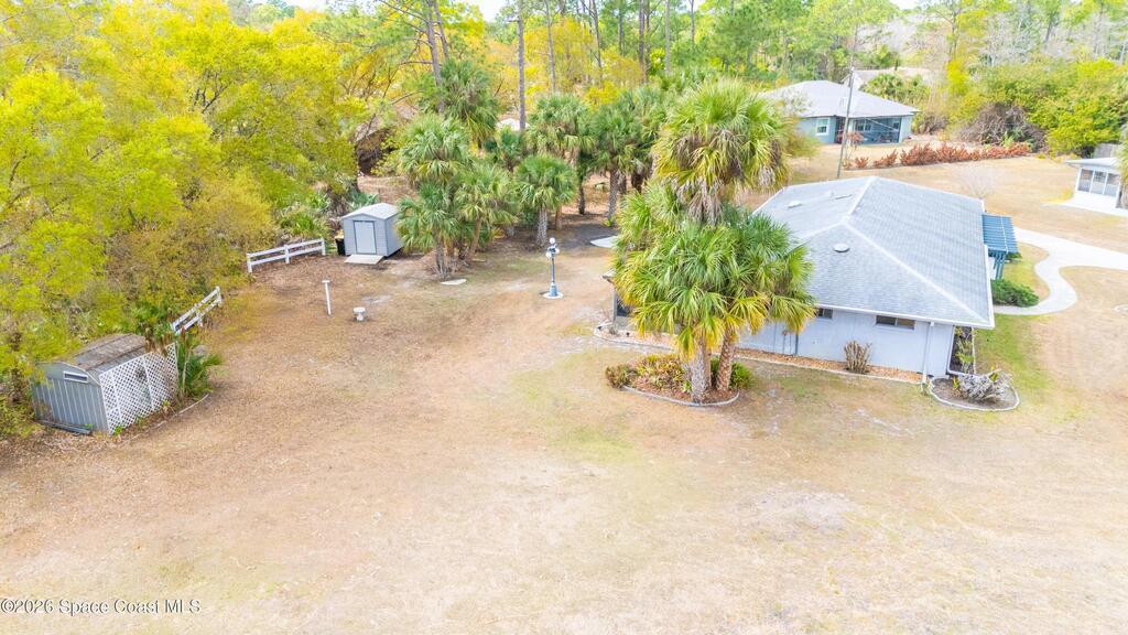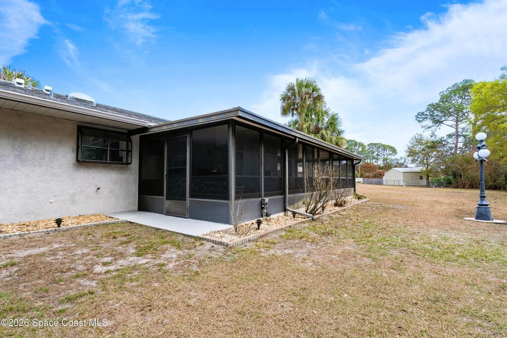 Looking for a move in ready home with some land that you can make your own - at your own pace? Here she is! This well maintained, ONE owner, 3 bedroom, 2 bath, concrete block home sits on .62 acres - a rare find especially at this price point! Inside, this split plan home offers a spacious primary suite with a walk in closet, a charming kitchen featuring KitchenAid appliances and tile in all wet areas. The GIANT Florida room has brand new screens and vinyl making this space truly usable year-round. Outside is a dream with an extended driveway, oversized 2-car garage and TWO storage sheds so you can bring ALL the stuff and still have plenty of room for a pool or additional building or both! Located in a convenient area of SE Palm Bay just minutes from I-95, shopping, dining and within walking distance to A-rated Odyssey Charter School. Roof 2016, HVAC and H2O heater are both within the past 2 years.