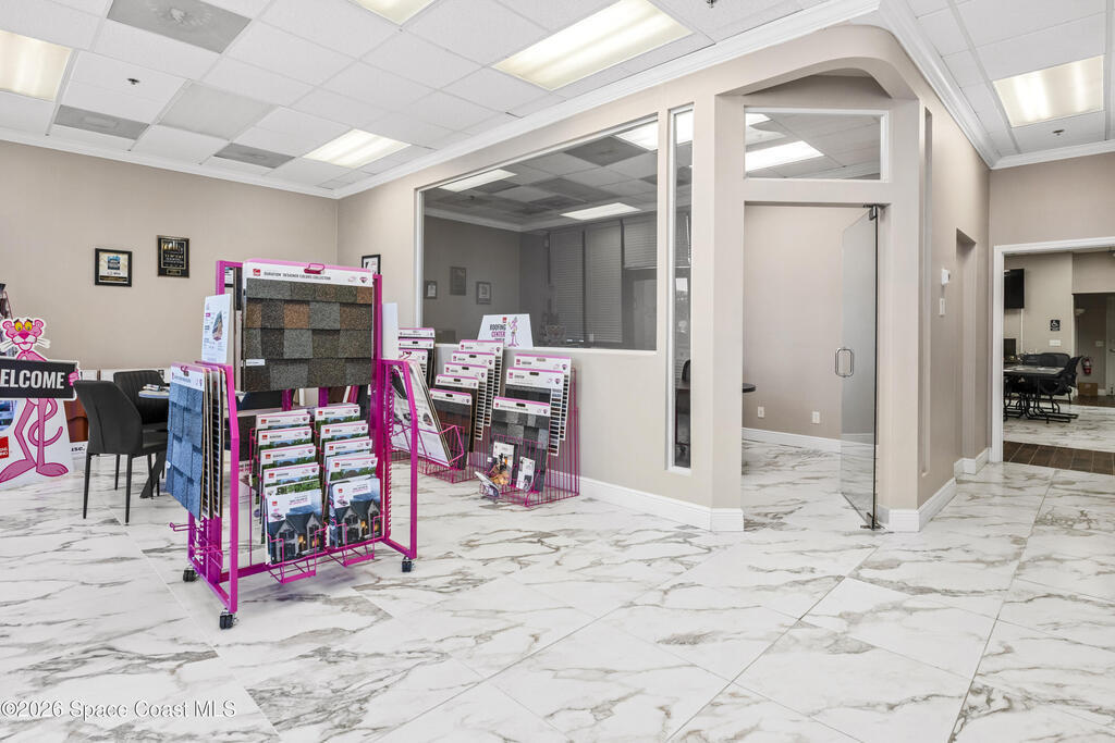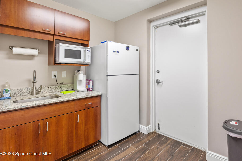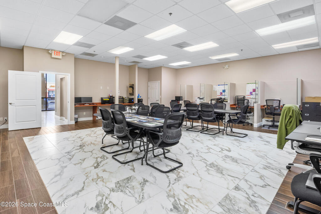 Now available in a professionally maintained plaza along highly desirable Wickham Road in Suntree, this includes two adjacent suites (Units 104 & 105) totaling 2,100 square feet of well-designed office space.The suite is built out with wood-look tile flooring throughout, a granite reception area, a combination of open workspace and private offices, and two renovated restrooms and a kitchenette with granite counters. The layout offers flexibility for a variety of professional uses.The plaza provides excellent visibility with available signage along Wickham Road, exposing your business to steady daily traffic. The property shares the center with Amici's Italian Restaurant and is surrounded by a strong mix of established office and retail businesses, creating a vibrant professional environment.With high traffic counts this space is ideal for professional services, medical, financial services, consulting firms, or businesses seeking a polished and accessible location.
