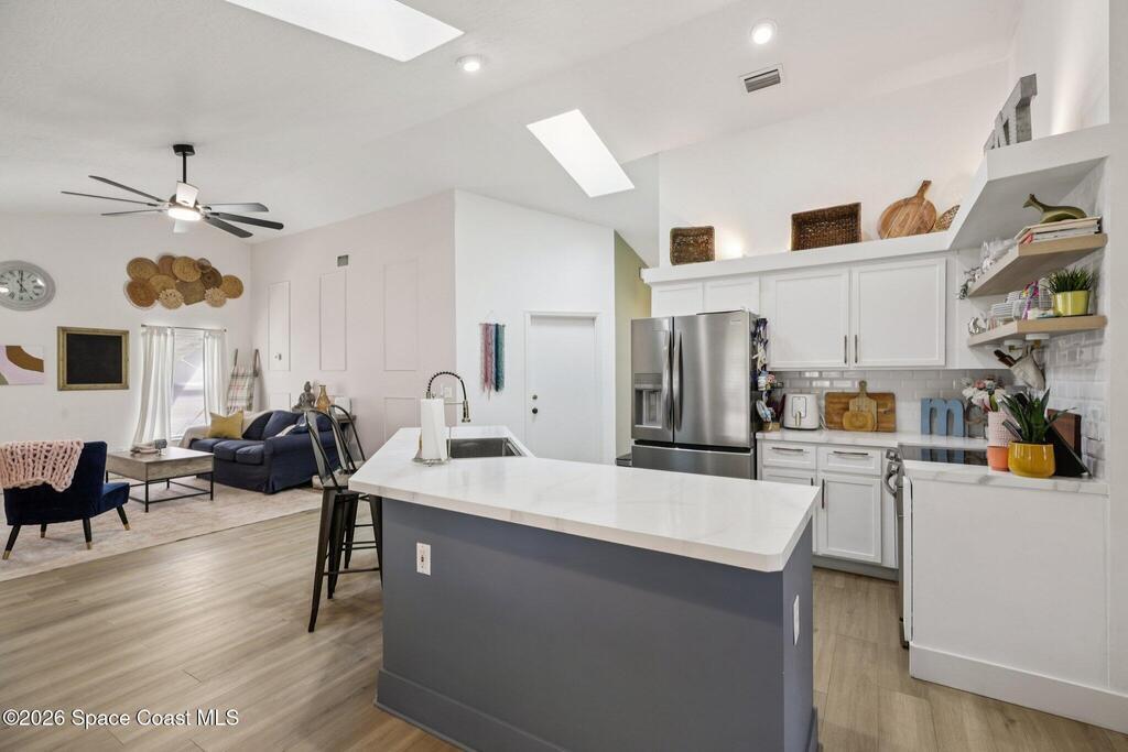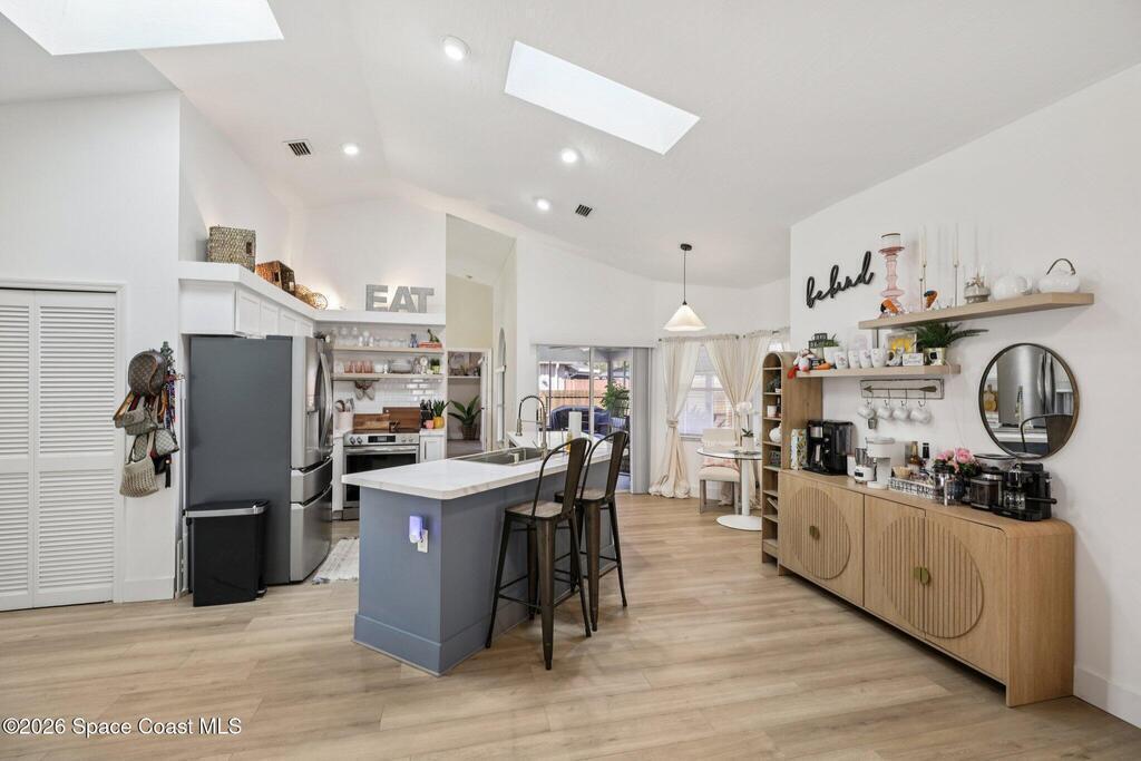Beautifully updated concrete block home featuring 3 bedrooms, 2 bathrooms, and 1,679 square feet of living space, built in 1993 and located on city water. Conveniently situated with easy access to St. Johns Heritage Parkway and the new Publix shopping plaza, making commuting and daily errands simple. Inside, the home features new luxury vinyl plank flooring, stylish wall accents, and a spacious walk-in pantry created by expanding the original pantry area. The kitchen offers a center island with sink and a cozy breakfast nook. Bathrooms have been updated with new primary shower tile and new vanity cabinets. Recent upgrades include a new roof (2025), new appliances, and multiple HVAC improvements including a new AC blower motor, squirrel cage, condenser fan motor, and cleaned evaporator coils. The water heater is approximately 5 years old. Step outside to enjoy a large screened lanai, above-ground pool, and privacy-fenced backyard with mature trees.