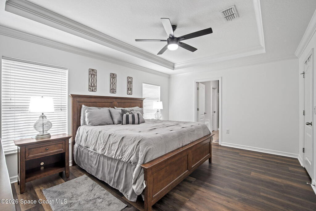 Built in 2015 and beautifully maintained by the original owners, this family-friendly West Melbourne home offers the space and flexibility today's buyers dream of. With 4 full bedrooms plus a bonus room (perfect for a playroom, office, gym, or 5th bedroom) the layout fits every stage of life. One of only 2 in the community with this unique floor plan, elevation, and inviting front porch, it truly stands out. Recent updates include a 2024 roof (Class-A shingles under warranty), 2024 impact-rated garage door, 2025 interior/exterior paint, and 2023 Samsung washer and dryer. Concrete block construction, hurricane panels, no flood zone for lower insurance, full yard irrigation on a well, vinyl privacy fence, and leased solar panels (with buyer option to keep or remove) keep electric bills near-zero. Incredible location in a safe community, close to trails, shopping, dining, and the best that Melbourne offers. Schedule a showing before its gone! Message Sam Boyd with any questions.
