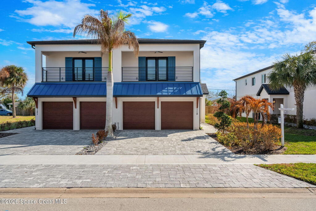 Where South Beach Style Meets Space Coast Comfort.RARE opportunity to own a 2025-built multi-unit property, just five blocks from the beach with NO HOA! Each side lives like a single-family home with a 2-car garage and 2,280 sq ft (4,560 total). Each unit offers 3 spacious bedrooms, 2.5 modern baths, and an open-concept layout that flows into a designer kitchen with quartz and granite countertops and stainless-steel appliances--ideal for everyday living or entertaining. An upstairs flex space is perfect for an office, gym, or media room. Unwind on the covered patio or private balcony off the owner's suite. Enjoy lush landscaping, a paved driveway with ample room for an RV, boat or extra parking, plus an outdoor shower for easy post-beach clean-up. Seller is also offering an identical property, purchase one or both! Just minutes to Port Canaveral, waterfront dining, cruise terminals, the Cocoa Beach Pier and prime rocket launch viewing from nearby Jefferson Ave beach access.