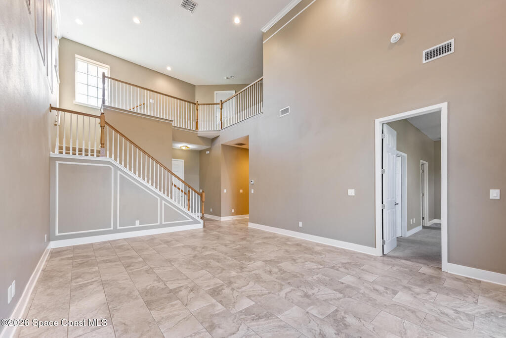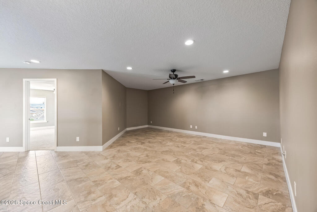 Rare beach-side rental opportunity! Beautiful Builders Model with over 2200 sq ft. of living area. With Room for the whole Family, this luxury town home villa, only 6 years old, offers soaring cathedral ceilings and an open, light-filled floor plan. High-end finishes include granite mosaic tile and backsplashes in the kitchen and baths, 42'' wood cabinets, ceramic tile throughout living and wet areas, and a 3-panel sliding glass door leading to the private lanai. Upstairs features a spacious loft and bedrooms with large walk-in closets. Built with solid concrete block construction and high-efficiency Low-E impact windows for added comfort and peace of mind. HOA includes lawn maintenance and access to the community pool. Conveniently located within walking/biking distance to local schools Holland Elementary, Delaura Middle and Satellite High school, a 7-minute bike ride to the beach, and close to Patrick Space Force Base and I-95 for an easy commute.
