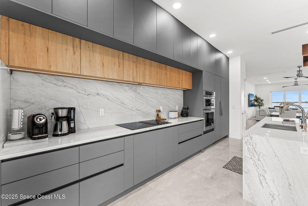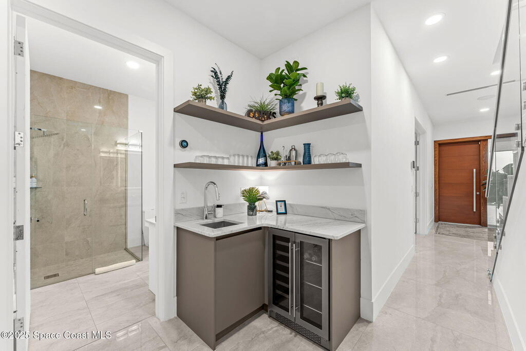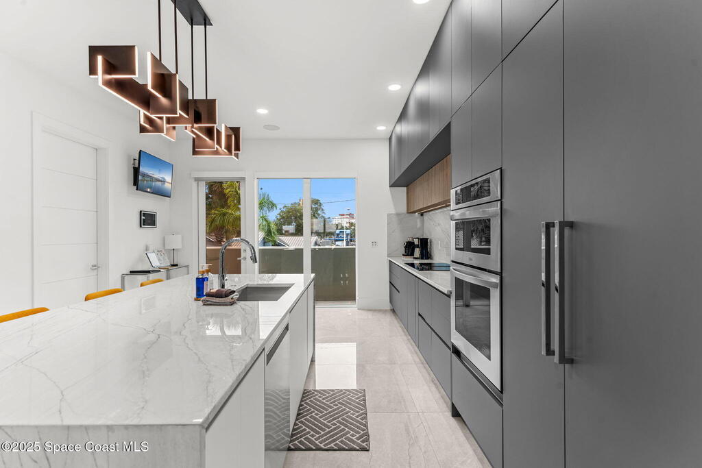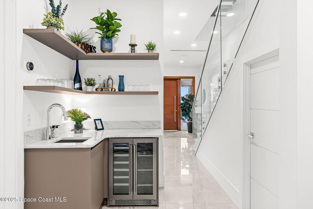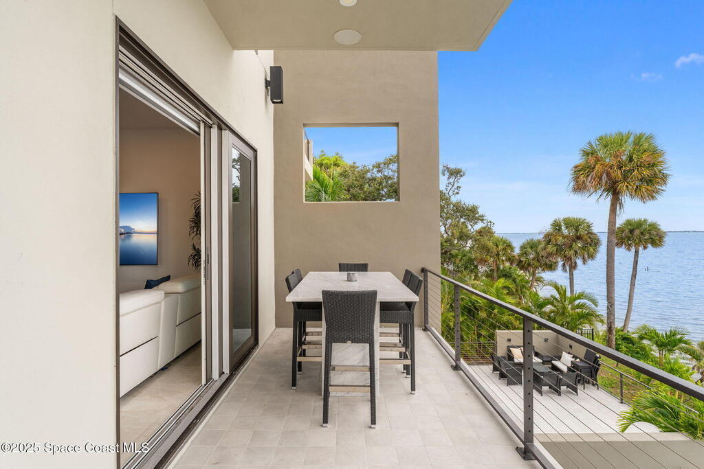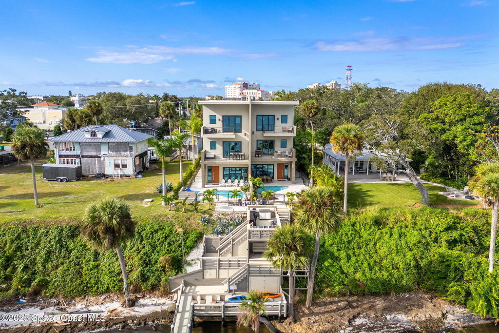 Experience a level of craftsmanship rarely seen on the market. Not a single expense has been spared by this international developer--every inch of this home reflects precision, intention, and luxury. Perched 20 feet above sea level and built like a fortress, this 2023 direct-riverfront residence delivers panoramic Indian River views and European-inspired elegance across 2,936 sq. ft., seamlessly connected by a private elevator to all three levels.Every design element is a statement piece: a sculptural marble-and-oak floating staircase, glass railings, sleek porcelain flooring, and meticulously curated finishes that redefine modern sophistication. The Euro-style kitchen features premium appliances and custom cabinetry designed not just for functionality, but for elevated living and entertaining.Set on a private 0.12-acre riverfront parcel, the estate includes a resort-style pool with waterfall and a 366-ft private dock outfitted with both boat and jet ski lifts.