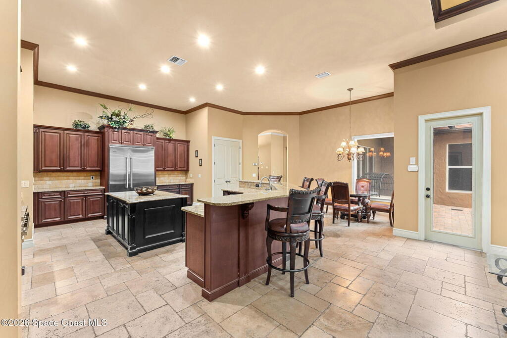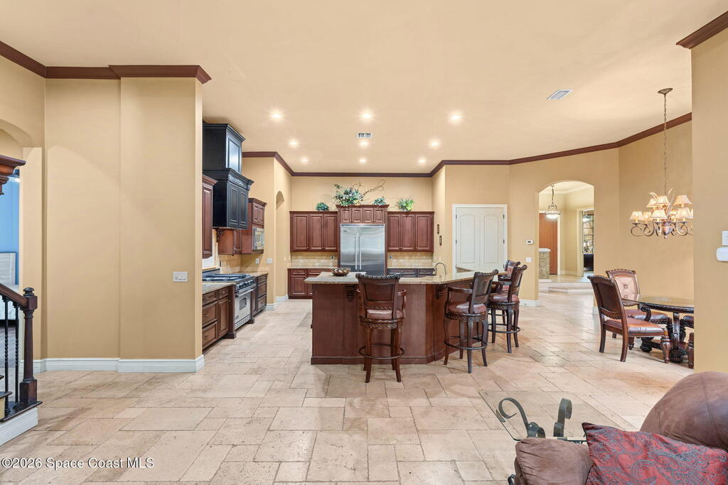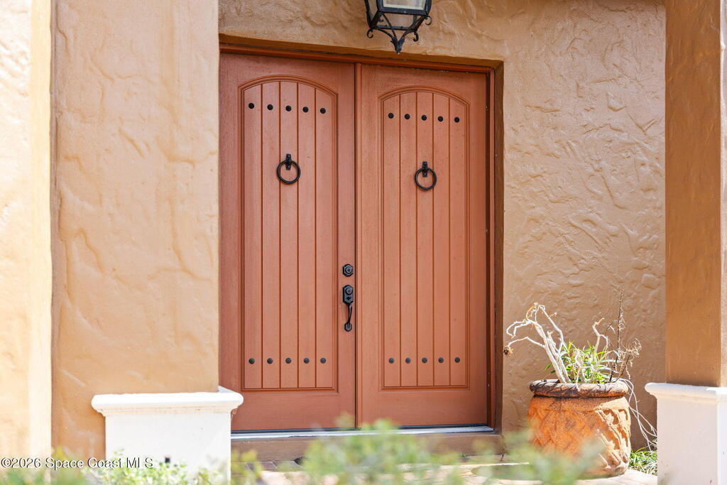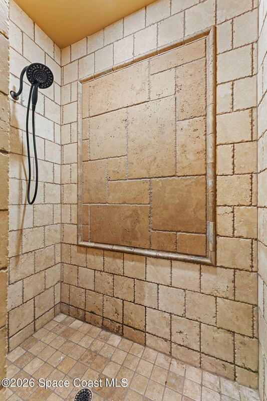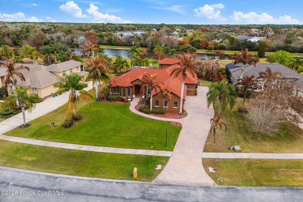 An extraordinary opportunity to own a custom-built estate crafted by one of the region's most respected luxury builders, originally constructed as a personal residence and perfectly situated on a full acre of beautifully landscaped grounds. Ideally located just minutes from Cocoa Beach, the world-famous shoreline, Port Canaveral, premier shopping, and renowned restaurants--yet privately tucked away within its own peaceful sanctuary. From the elegant old-world textured exterior to the travertine flooring throughout, every detail reflects timeless craftsmanship and refined design. Recent upgrades include a brand-new roof, Viking refrigerator with premium Viking appliances, new water heater, custom front entry door, and new washer. At the heart of the home is a chef's island kitchen featuring rich cherry cabinetry with chocolate glaze, granite countertops, and high-end finishes.
